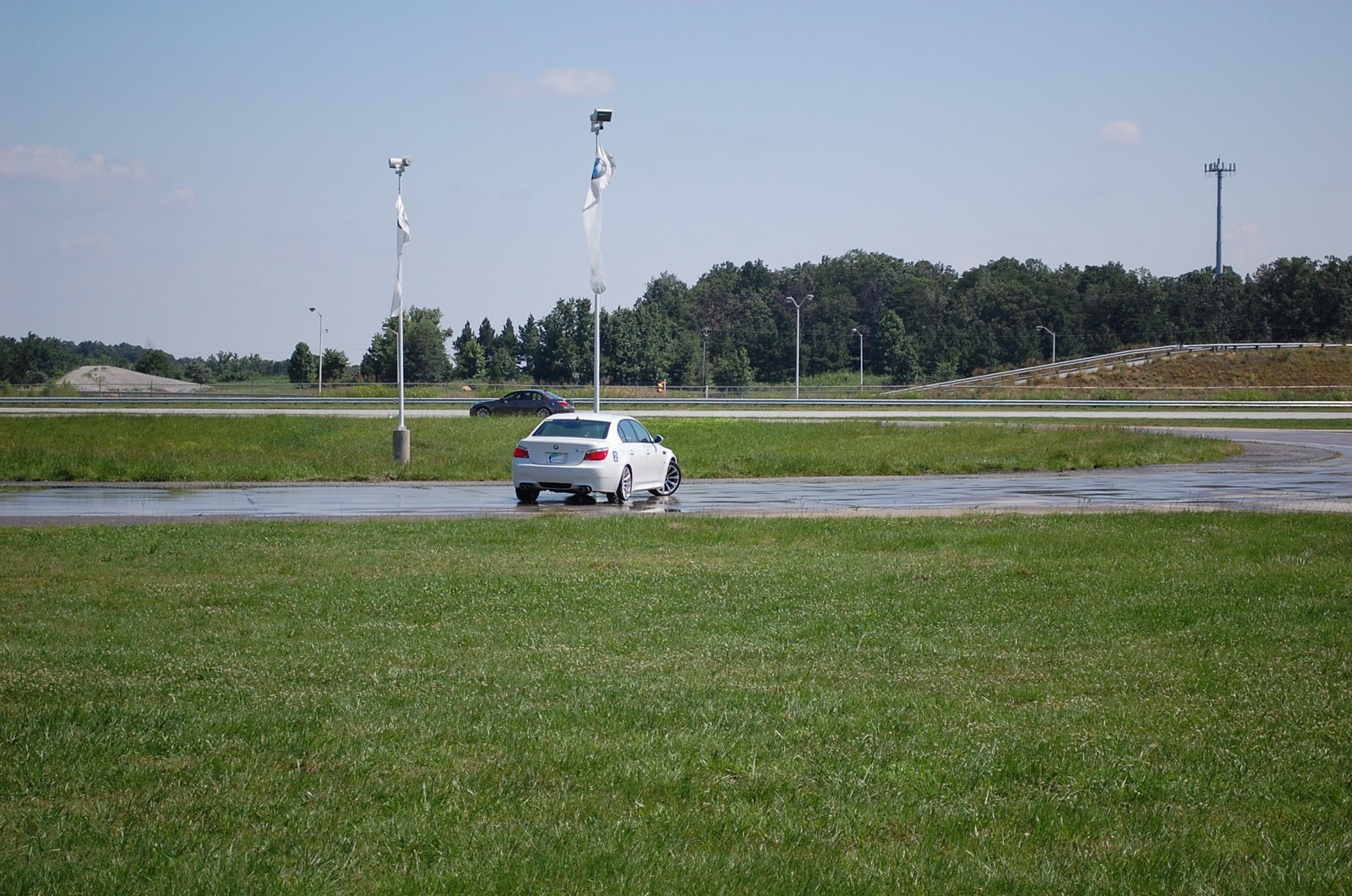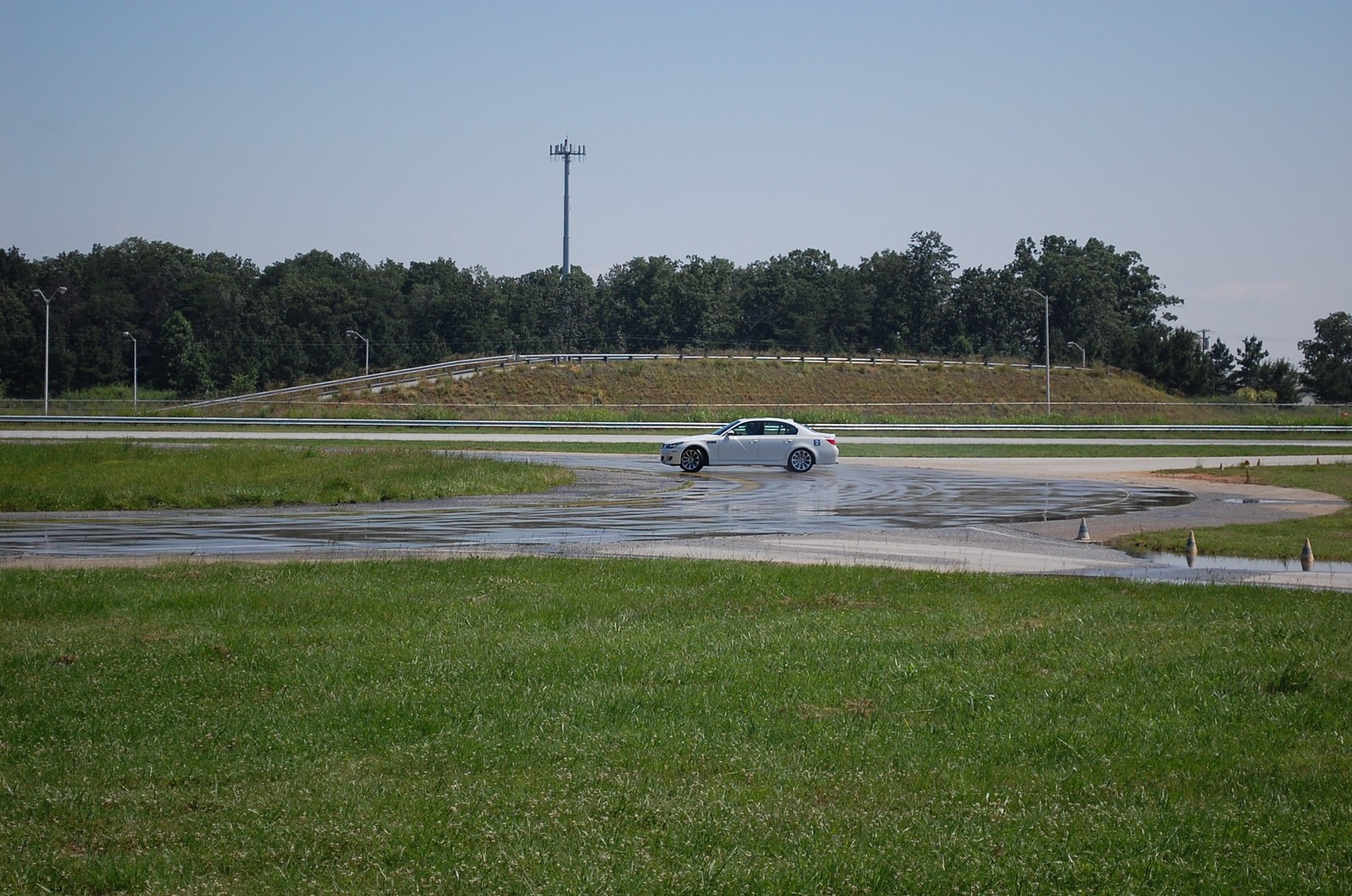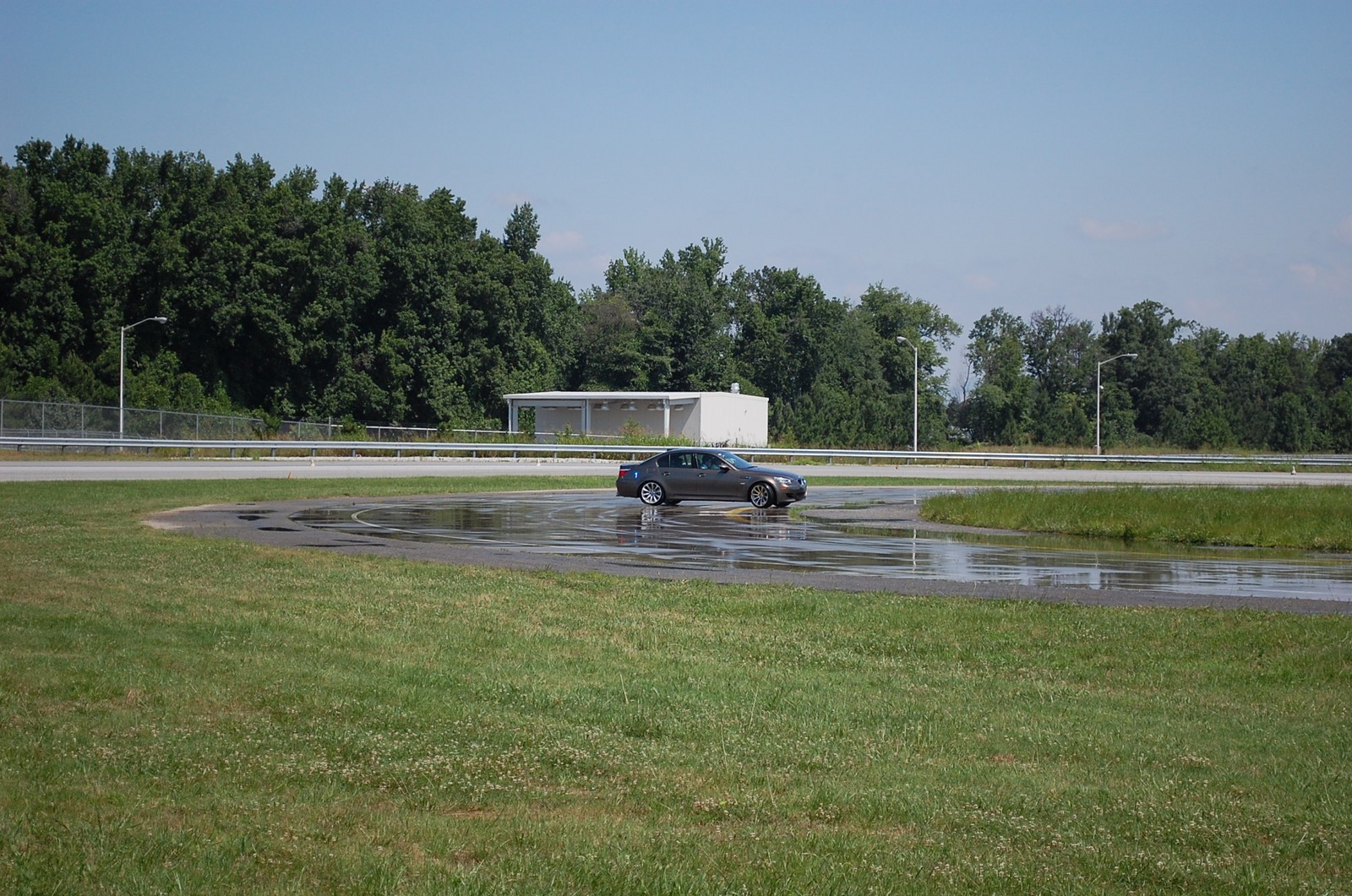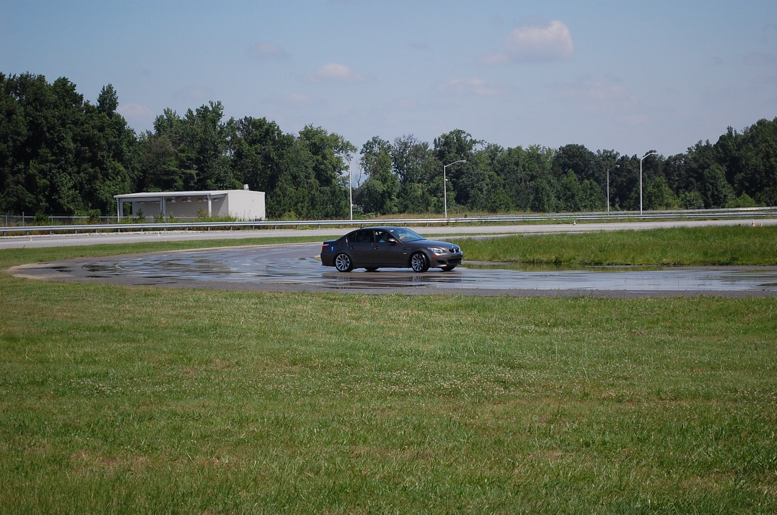 M5 driving on a wet skid pad