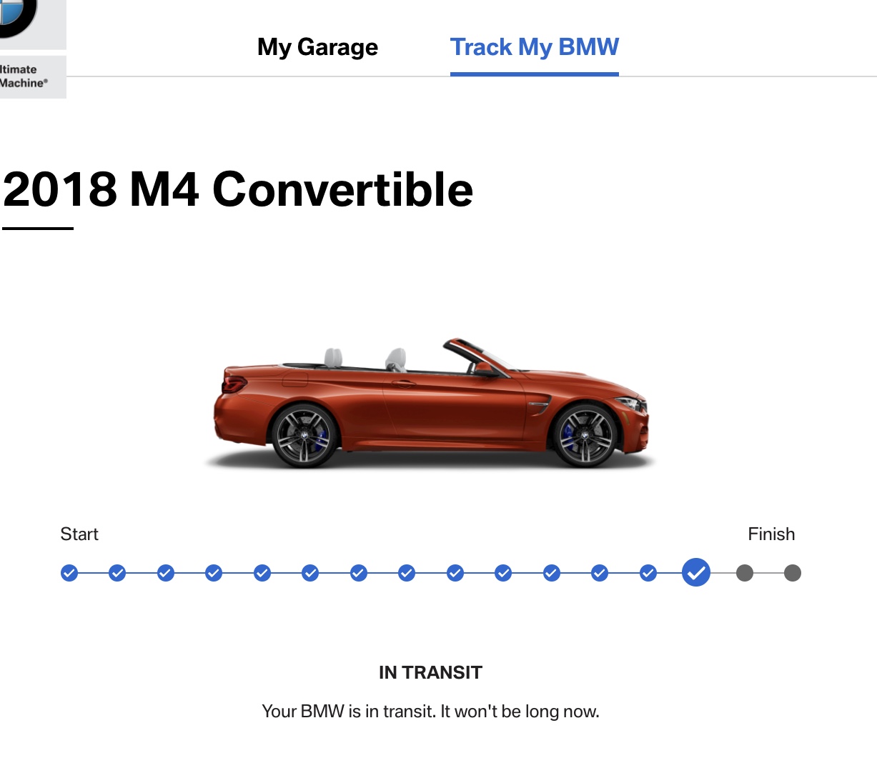 You can also track your car using the My BMW site with your production order number and the general 1-800 BMW number, but that info seems to be slightly behind.