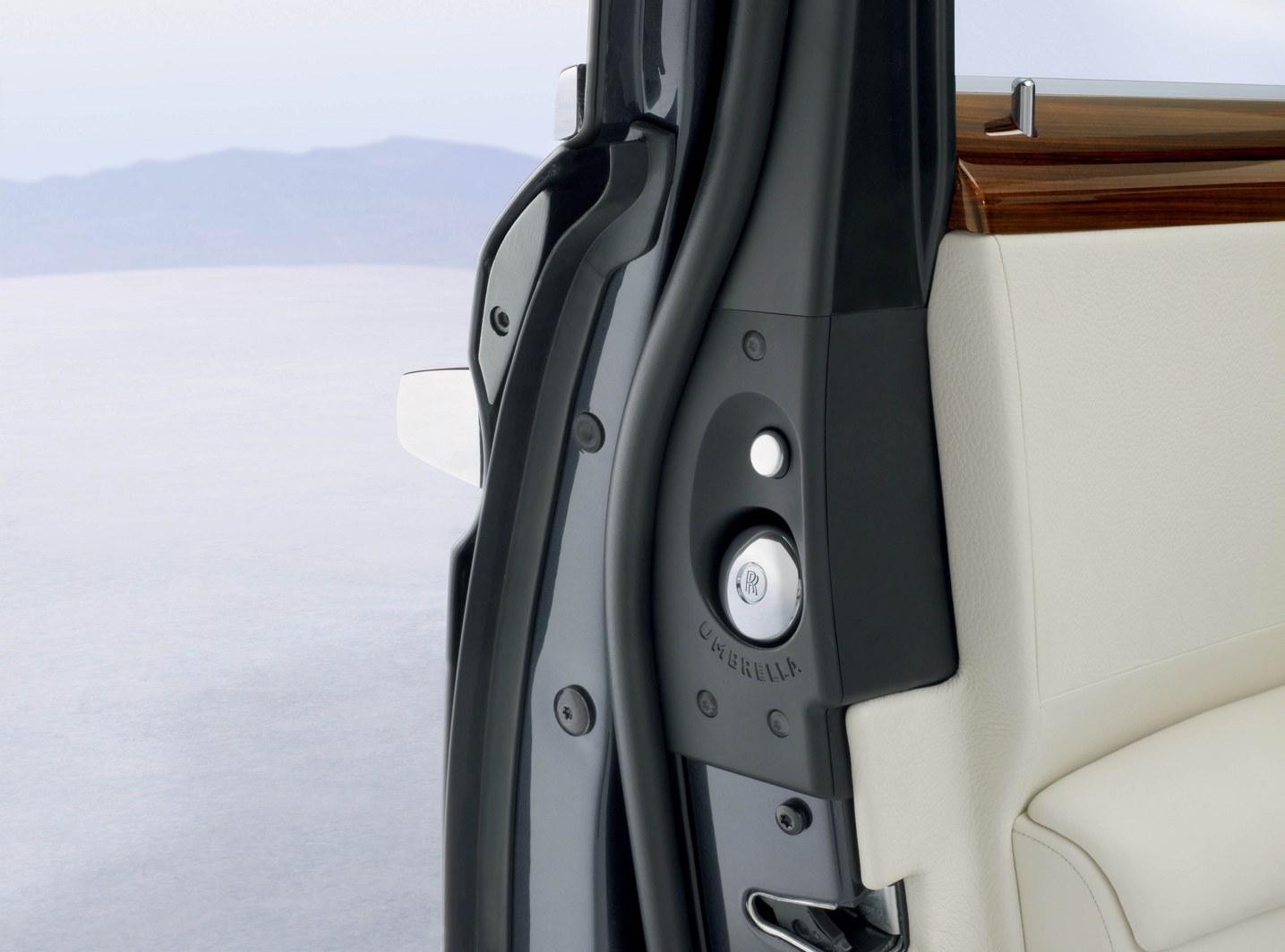 Ghost is entered through substantial doors. Housed within the front doors are integrated Teflon-coated umbrellas. The rear doors are traditional, rear-hinged coach doors, opening to a generous 83 degrees. Once the passenger is inside, these doors can be closed at the touch of a button. The interior space is filled with natural light, enhanced by the optional Panorama Sunroof, which extends from the front into the rear compartment.