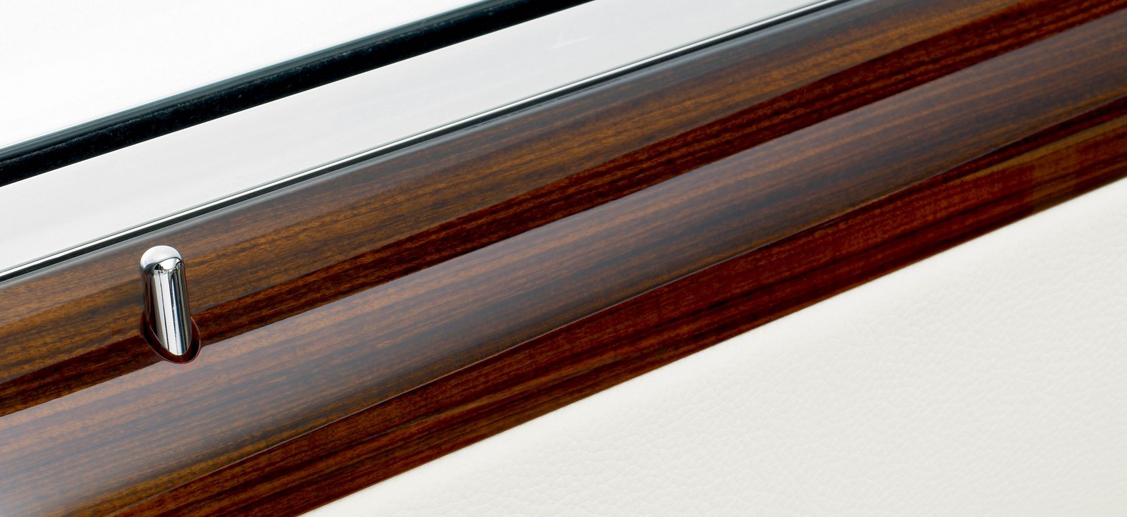 The natural beauty of the veneers in Ghost is brought to life by the skill of dedicated craftsmen and women. The natural burrs and grains are chosen for their intricacy and interest: veneer specialists choose only the finest logs from which these very thin cross sections are taken. Only veneer from one tree is used in any car. This ensures not only that the grain matches throughout the interior, but that each area ages and colours at the same pace. The parts are milled and sanded by hand before being coated with five layers of lacquer for protection and a mirror-like shine.