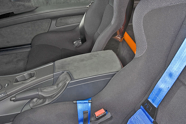 Indispensable for safety reasons: the lightweight construction body has been prepared for installation of the 6-point seatbelt included for use on the race track. There are also mounts for the roll-over protective structure bolted on from the B column. A fire extinguisher and a battery master switch/emergency shut-off preparation do not make the car lighter either – but safer. So the BMW M3 GTS concept vehicle puts the scales up to around 1490 kilograms – causing the engineer to give an appreciative nod.