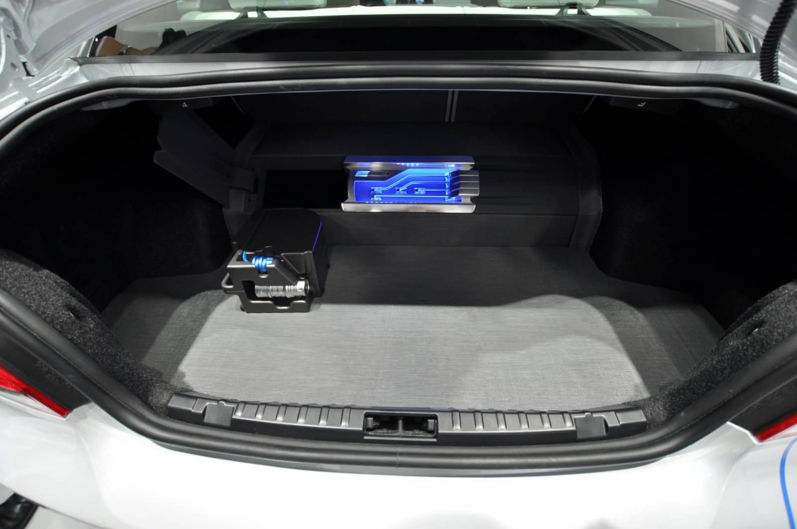 This concept is powered by a completely new electric synchronous motor that has been specifically developed for this vehicle. With 170 horsepower it develops a maximum torque of 250 Newton meters. In everyday driving it achieves a range of about a hundred miles.