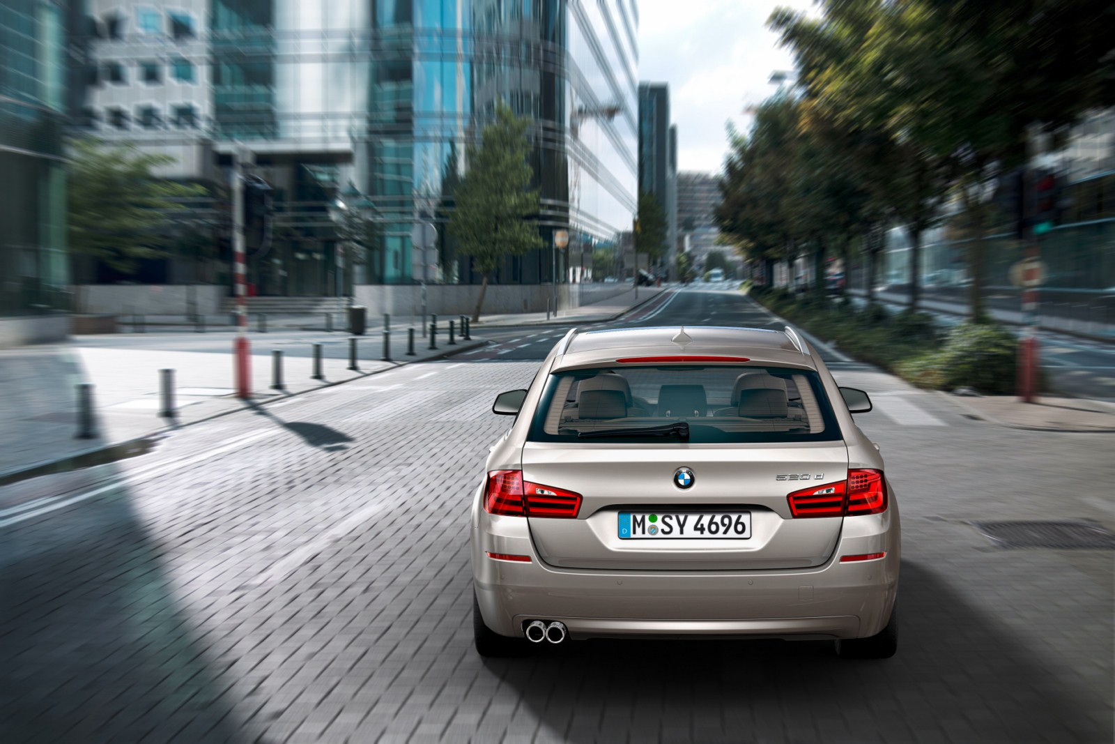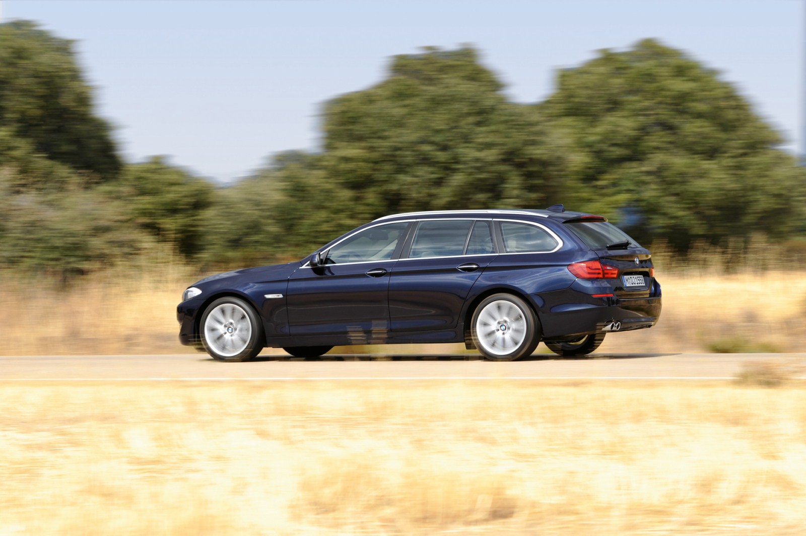The new BMW 5 Series Touring is making its debut with a choice of two straight-six petrol engines as well as a four-cylinder and a six-cylinder diesel. The BMW 520d Touring is powered by a 135 kW/184 bhp four-cylinder turbo diesel power unit featuring an aluminium crankcase and Common Rail direct injection. It is equipped with Auto Start Stop function as a standard feature, and with an average fuel consumption of 5.2 litres/100km (54.3 mpg) and a CO2 emission level of 137 g/km in an EU test cycle, it achieves the best efficiency in its segment.