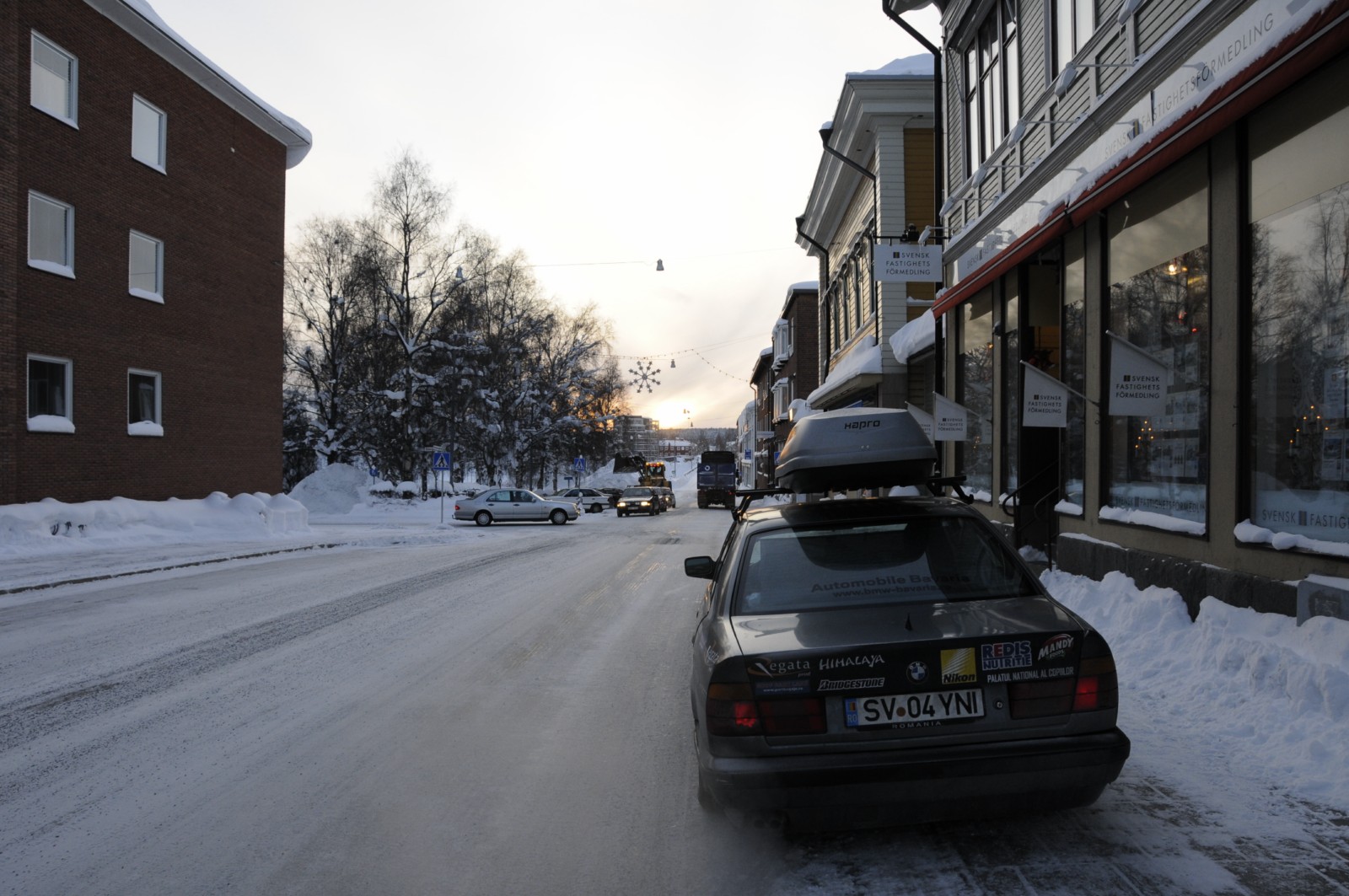 Initially I planned to reach the North Cape – the northern point of continental Europe – but the last part of the journey was closed to automobiles traffic during winter, so I chose Rovaniemi, which crosses the Northern Polar Circle.