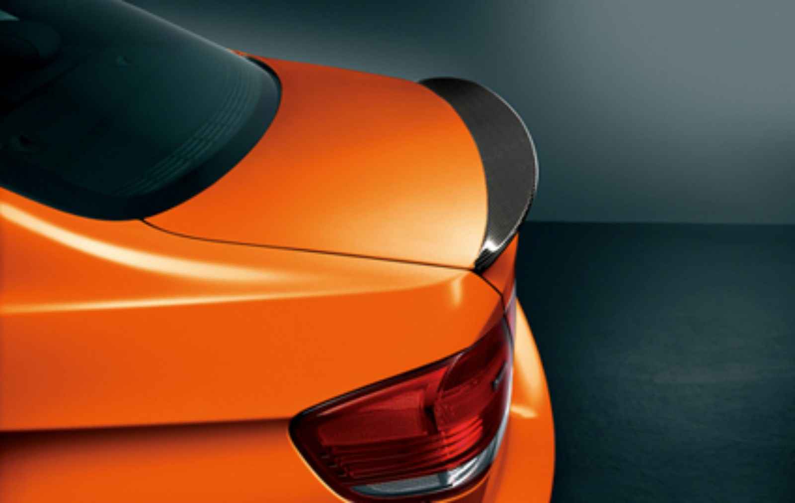 In addition to the unique exterior with numerous black accents, the M3 Competition Package in Fire Orange sports 359M styling wheels in 19 inches, black painted as the air intakes on the bonnet. Other blacked out parts include the kidney grills and chrome exhaust tips.