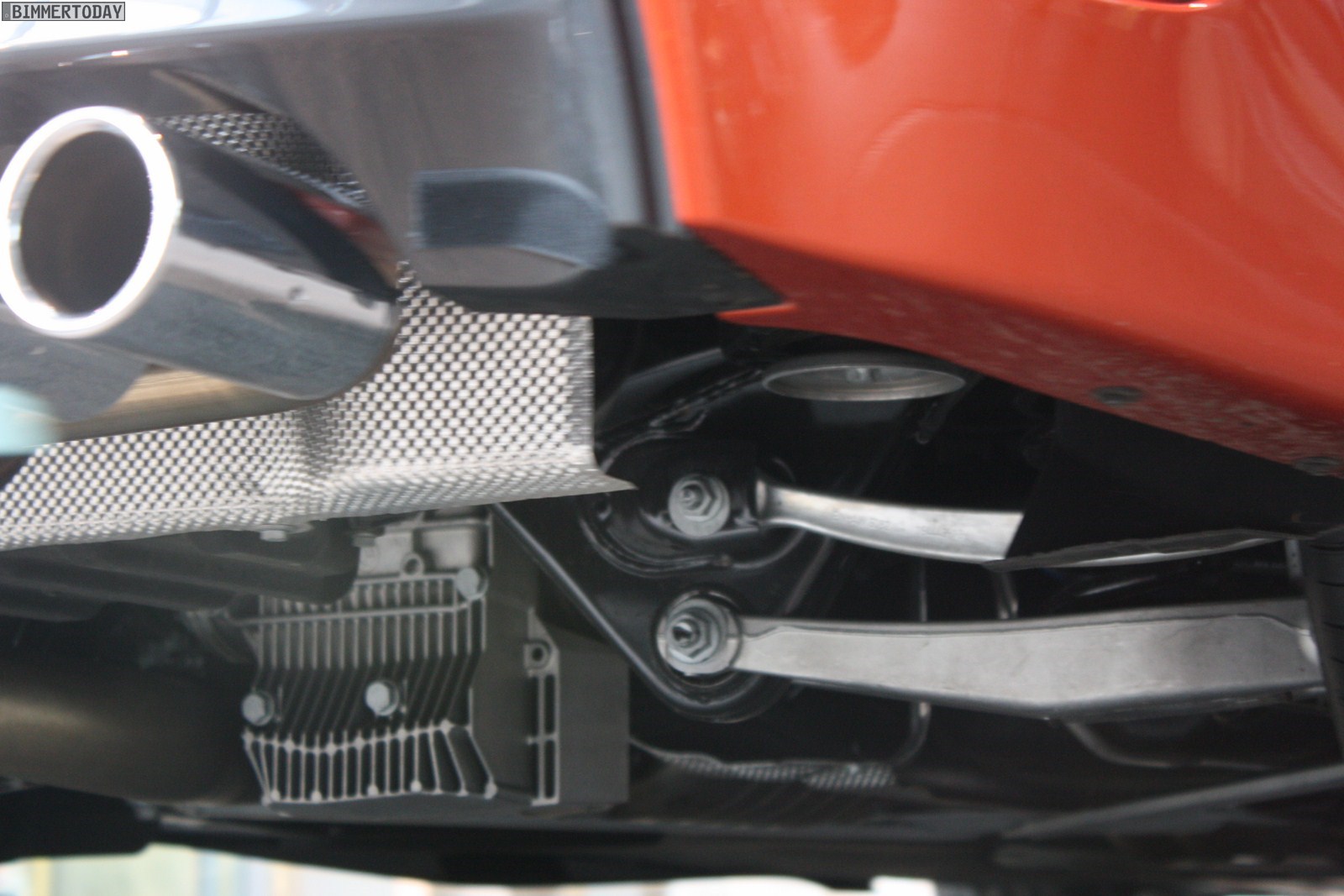 Despite its looks closer to the 135i Coupe model, the new 1 Series M Coupe is almost an entirely different car. Almost every suspension part is different. The springs are stiffer and the dampers have less travel, the bushings of the trailing arms are changed from rubber to joint balls and some rubber ones are stiffer. The suspension cannot be adjusted – also to keep the cost down. The front axle carrier is the same as in the 135i, but in the rear the one of the M3 is used.
