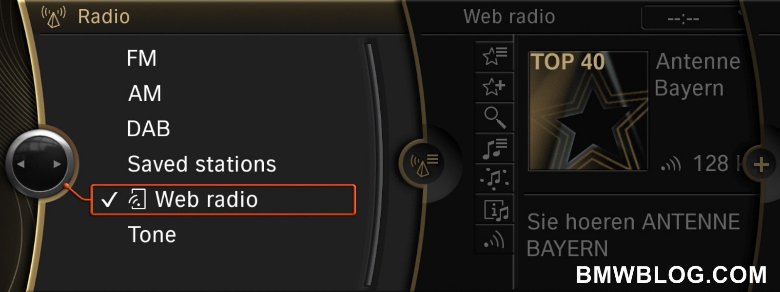 • Bluetooth Music Streaming: Bluetooth music streaming offers wireless audio streaming from the mobile device to the vehicle. Music stored on the mobile phone is played and controlled through the iDrive controller.
