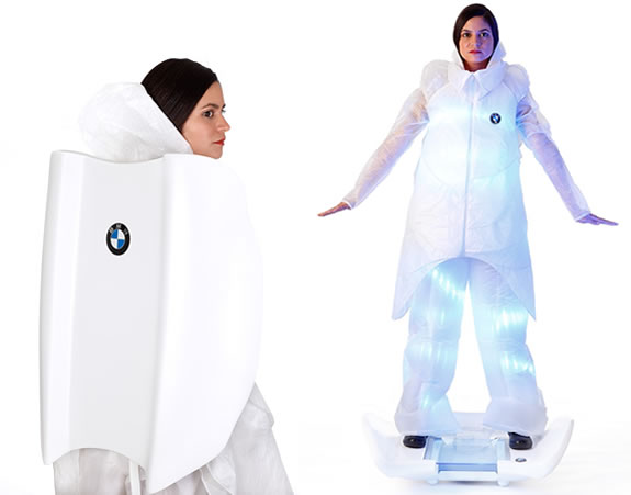 BMW asked a group of automotive design students in Barcelona to imagine some concepts for ‘Suits That Transport,’ or wearable alternatives to cars.