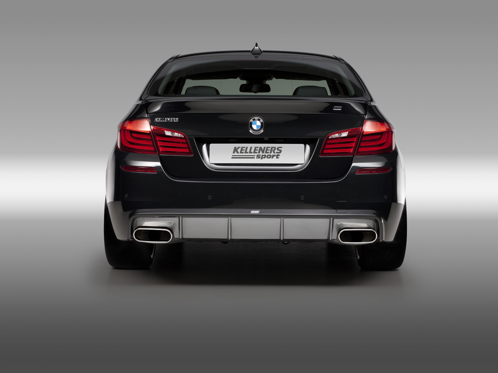 The 5 series with M sports package demonstrates this increase in power together with Kellener Sport’s elegant aerodynamics package. The electropolished stainless steel mesh of the MS three-part front grille emphasises the sporty origins of the BMW specialists. The dynamic design starts at the MS front spoiler lip, moves onto the side mouldings and grabs attention at the end with the rear spoiler, Kelleners lettering and MS rear apron with integrated diffuser. The oval stainless steel exhaust pipes measuring 225 x 90 millimetres add a sporty edge both left and right.