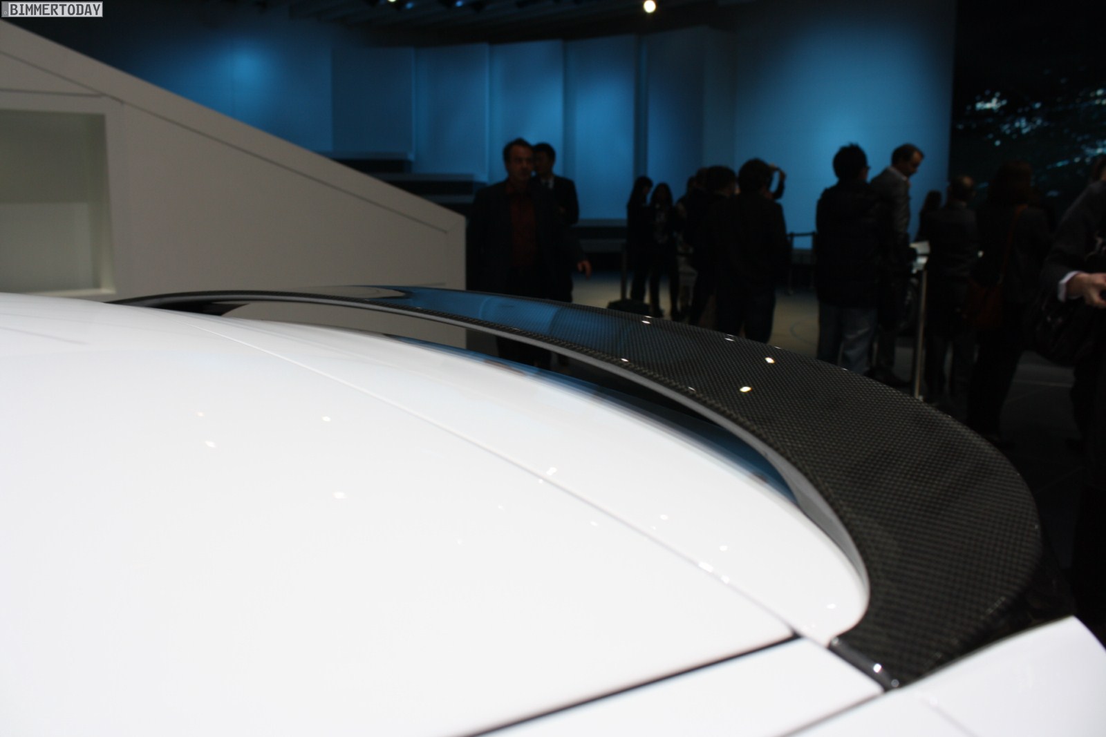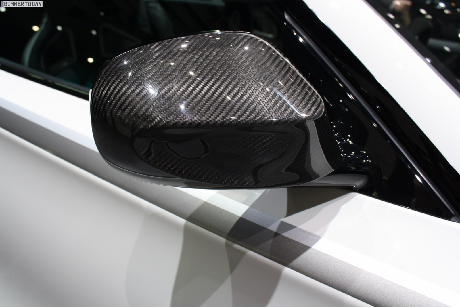 Inside, the sportiness look is enhanced by the bucket seats, sports steering wheel with Alcantara trim and on-wheel LCD display, as well as plenty of carbon-fiber parts for the extra sporty flair. We also see the holder for the Apple iPhone which is using the Application link to the BMW infotainment system and represents an interesting alternative to more expensive navigation system.