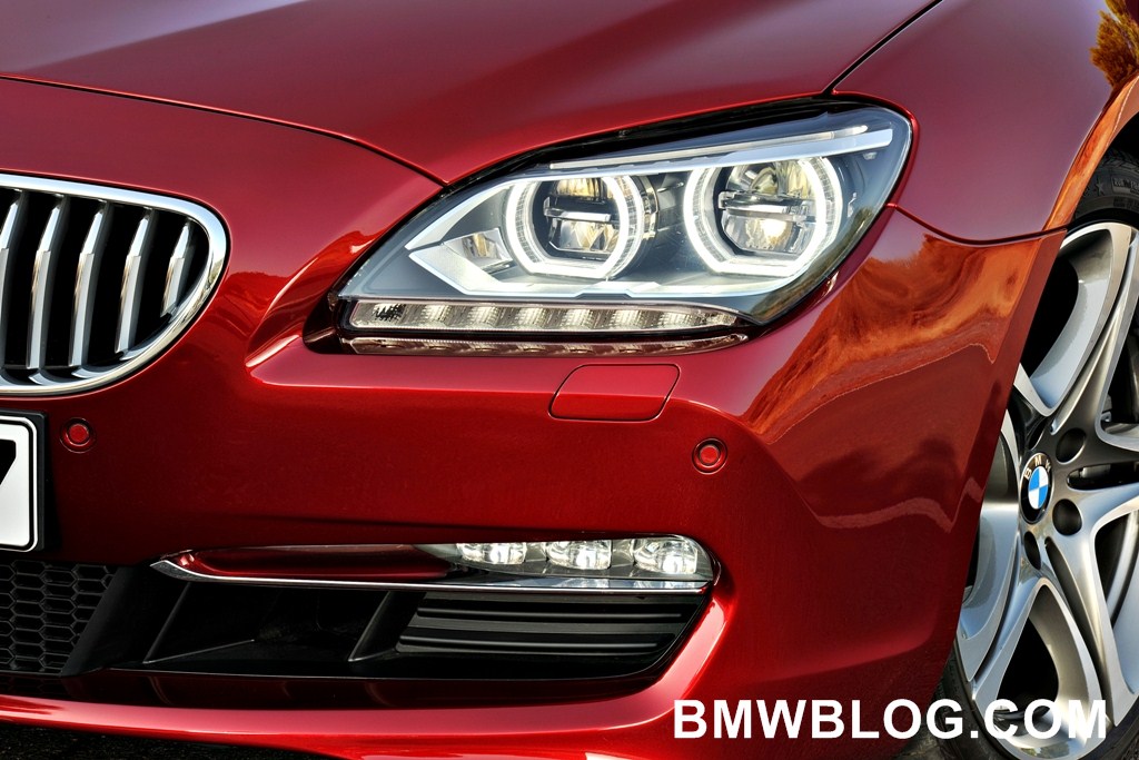 The new BMW 6 Series Coupe is equipped with Adaptive Xenon headlights as standard. An accentuating trim element cuts across the top of the hallmark BMW twin round headlights to produce the purposeful look familiar from other BMW models. The optional Adaptive LED Headlights provide a fresh take on this established feature. The Adaptive LED Headlights for low beam and high beam contain LED light rings for the parking lights and daytime running lights, which are flattened on the lower edge and overlapped at their top edge by an accent light – also featuring LEDs. The result is a stunning, distinctively BMW showcase for the innovative light technology. In addition, they also generate the low beam and high beam light from the two light rings. The light sources are horizontal LED ribs positioned in the center of the light rings. The brand’s hallmark twin round headlight look is therefore expressed even more strikingly – not only with the daytime running lights switched on, but also when the headlights are activated in the dark.