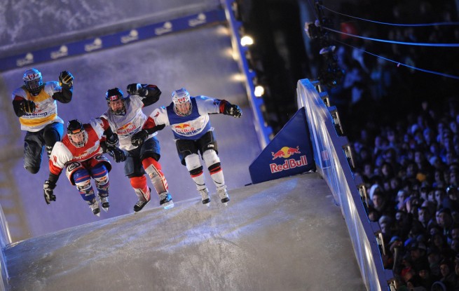 Canadians have a reputation of living ‘on the edge’ and at the penultimate round of the Red Bull Crashed Ice World Championship – top athletes will carve downhill at blistering speeds on the very edge of their skates. Â Downhill ice skate racing is not a new sport – in fact it’s been around pretty well since the invention of ice skates. Â But these athletes take downhill racing to the next level. Â Judging by the photos, they well nigh melt the ice.