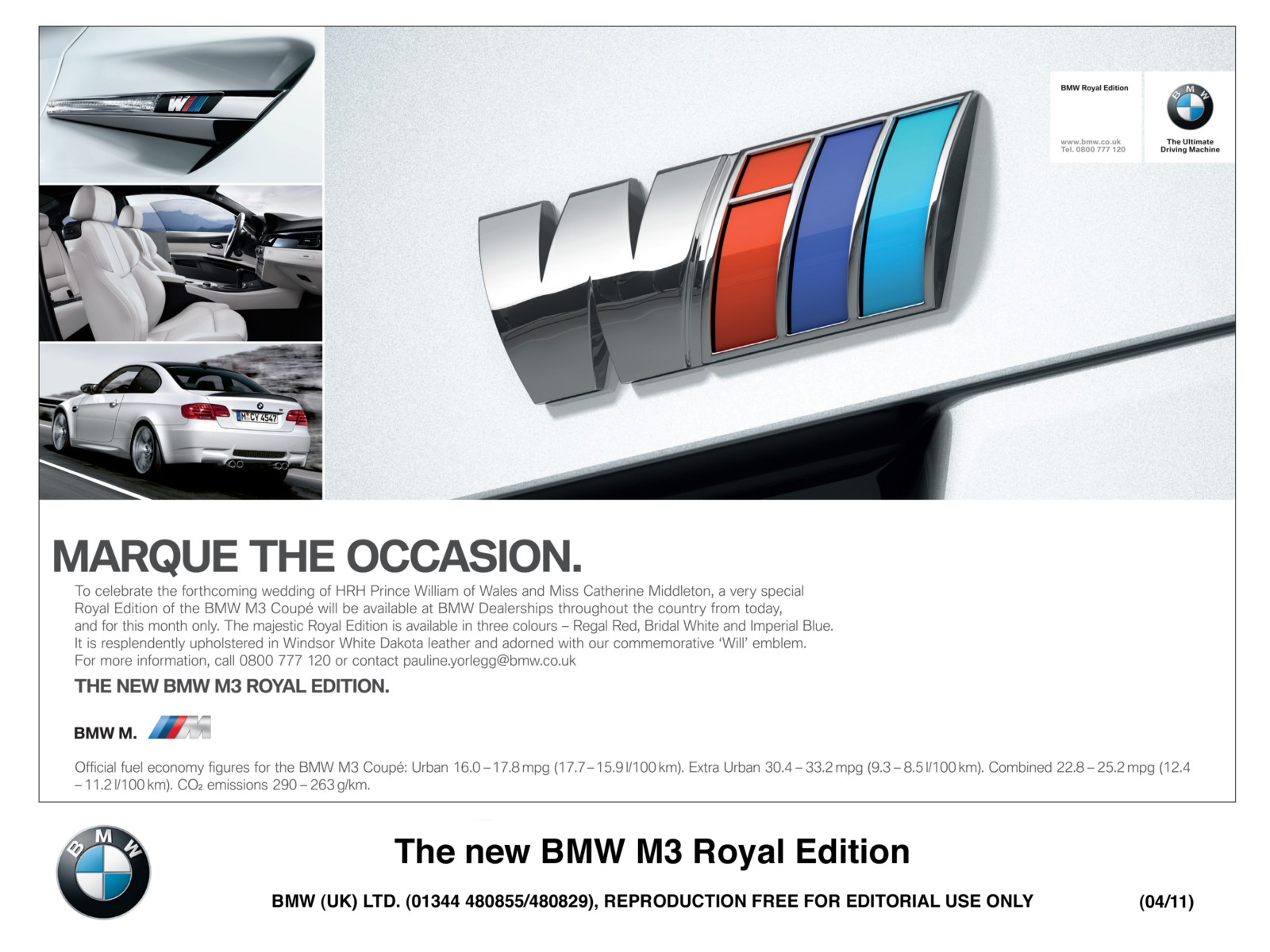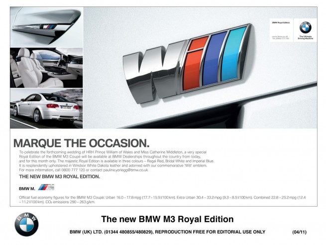 As Great Britain becomes gripped by royal wedding fever BMW has created a limited edition of the BMW M3 Coupé to celebrate this special occasion.