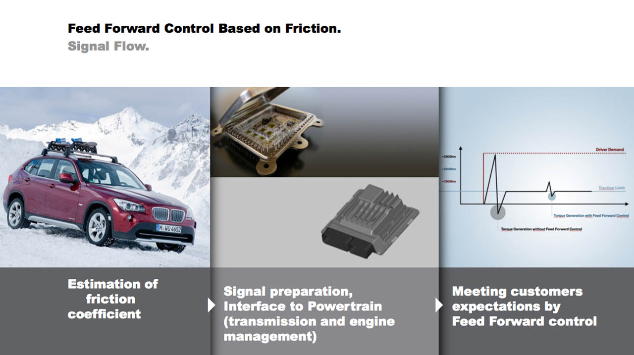 “So, let’s say you’re heading out on the road and it’s raining. The data connection pulls in the most recent weather information, the DSC takes in the coefficient of friction of the road and then restricts power to avoid wheel spin. With the integrated GPS, the system can detect the next curve, recognize you’re in Sport mode and downshift into a lower gear to perfectly suit the bend you’re about to bomb.”