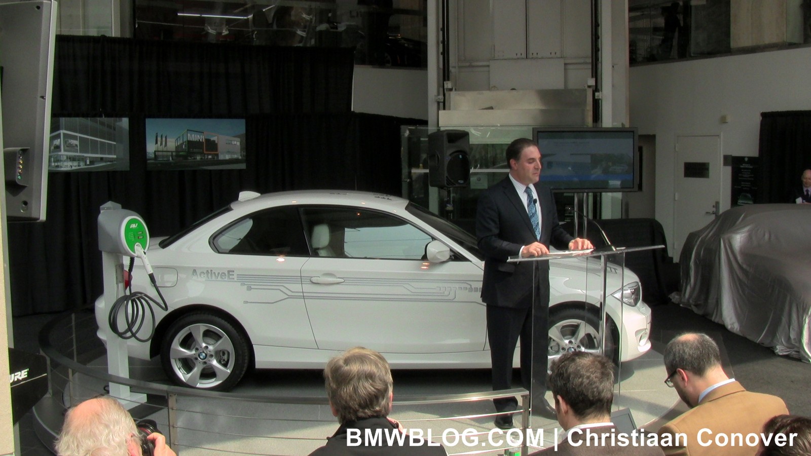 To emphasize the importance of New York City for BMW, the Munich-based company held its annual press conference for the NYC Auto Show at the factory-owned store in Manhattan. In front of several journalists and media representatives, BMW unveiled their first electric vehicle for the US market: BMW ActiveE.