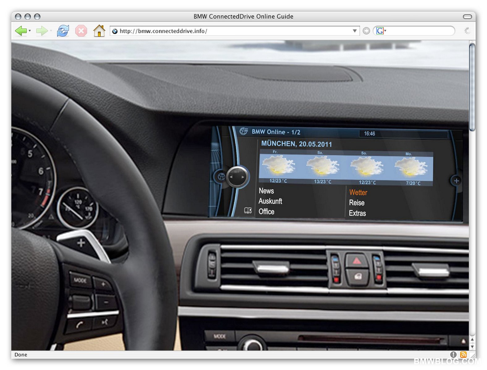 A further feature available from autumn 2010 across the entire BMW model range is the world-first Internet via Customer Mobile Phone service. The online connection is established using a compatible mobile phone integrated in the car via Bluetooth. The iDrive Controller is used to access websites, scroll, and activate links. The web pages appear on the onboard monitor.
