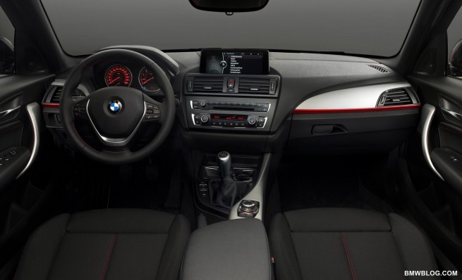 The door pulse ‘twist’ echos the twist seen in the center stack of the 6er. And the big nav screen certainly looks much better than the current 1er’s. And color (other than orange) is being introduced into the gauges. This interior is much better looking than the current 1.