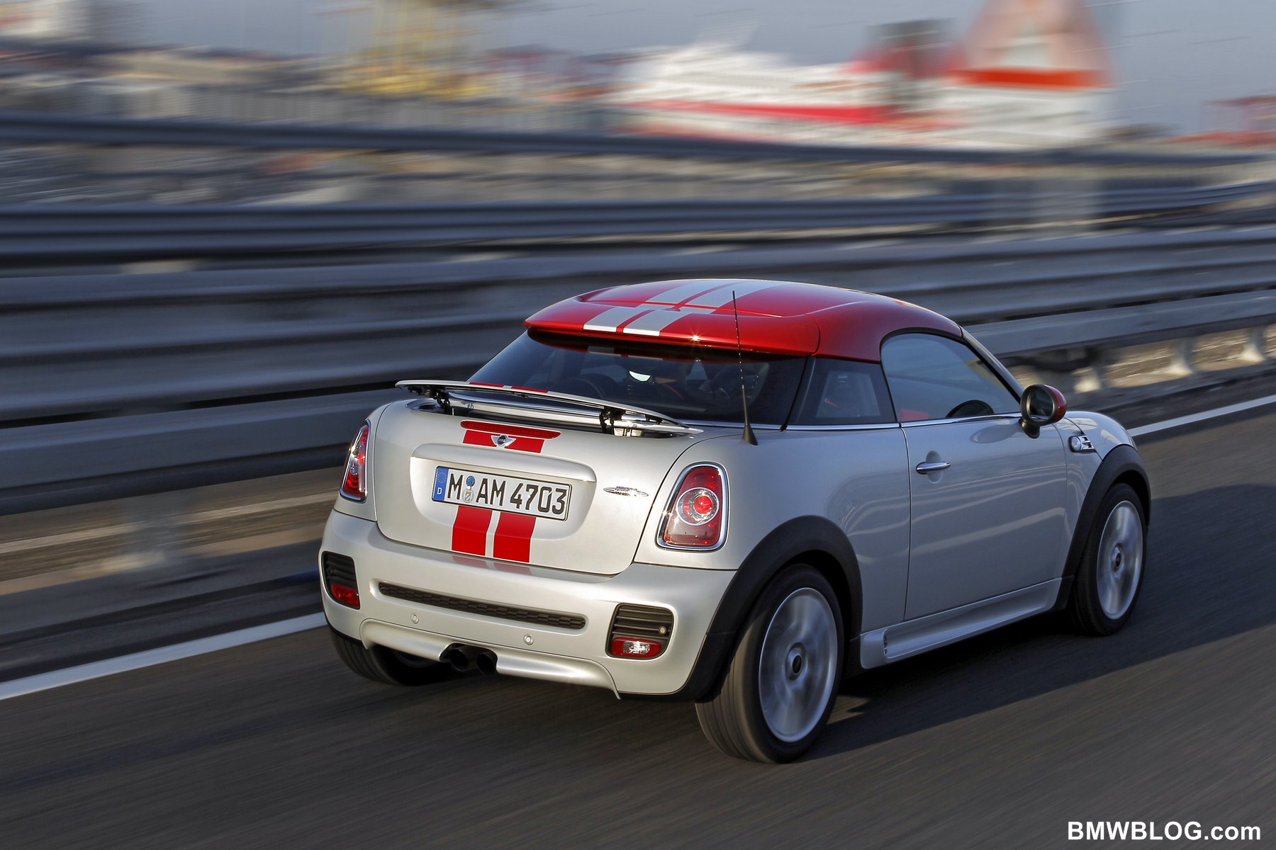 - First “three-box” MINI with strikingly stepped rear end in the classic style of a gran turismo; sporty, flat coupé silhouette; sits 29 millimetres lower than MINI; new, faithful expression of the hallmark MINI design language; distinctive “helmet roof” with integral roof spoiler; first MINI with an active rear spoiler to optimise airflow at higher speeds; rear spoiler extends automatically at 80 km/h (50 mph).