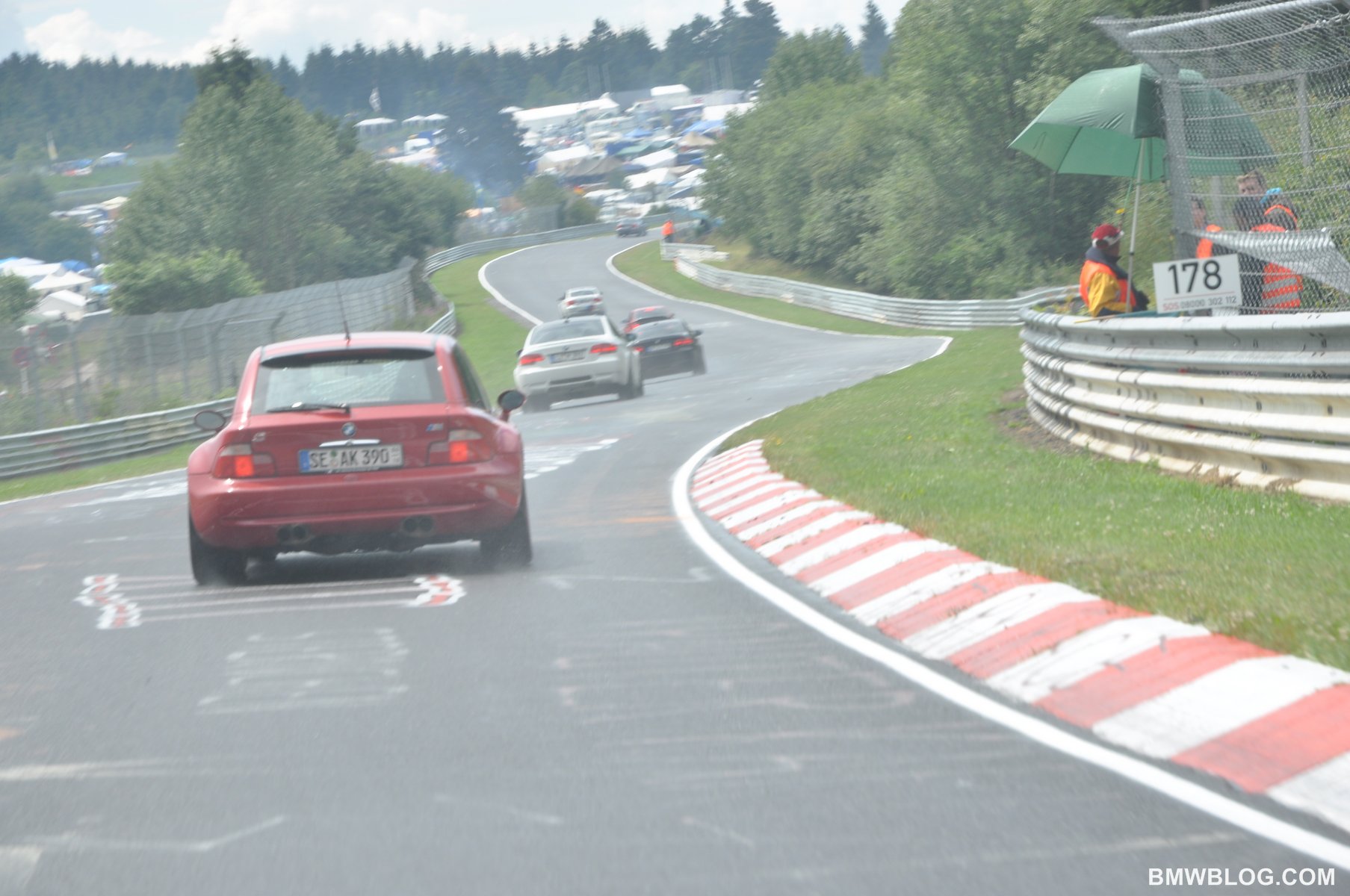 The parade was formed exclusively of M cars, and it was special to enjoy the company and social environment of so many M car owners.  During the parade lap, it was also encouraging to see the enthusiasm of so many loyal race fans lining the track side fences, waving, clapping, and smiling with excitement.  While some parts of the world are experiencing a lull in motorsport participation and enthusiasm, it is reassuring to see the passion and the dedication of the predominantly German and European crowd present for the race.  Their attendance is even more impressive when you factor in the rainy weather, muddy roads and camp grounds, and the fact that their tent will do nothing to quell the thunderous engines roaring merely meters from their track side camp.