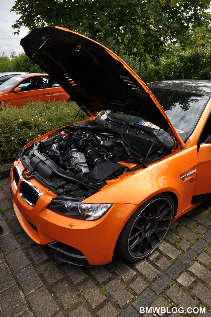 Prior to the start of the Corso parade lap, all participants lined up in two rows of cars, snaking around the access roads of the race track.  A delay in the start of the Corso allowed for ample time to admire and photograph fellow M cars lined up for the lap.  It was a spectacular line up, full to capacity with every M car you’ve ever driven, or dreamed of driving.  An M1 ProCar was found near the start of the parade.  In front of it, the 1M MotoGP Pace Car, the new (and seen for the first time today) M5 Ring Taxi, a copy of the new M3 CRT; and heading to the back of the line up we found an M3 GTS, G Power M3 (and while I don’t typically care much for modified cars, I do have to tip my hat to the clean design and outrageous performance of the machine – it would be fun to take for a boot), several M Coupes, and a plethora of other M cars including X5Ms, E36, E46 and generic E9X M3s.