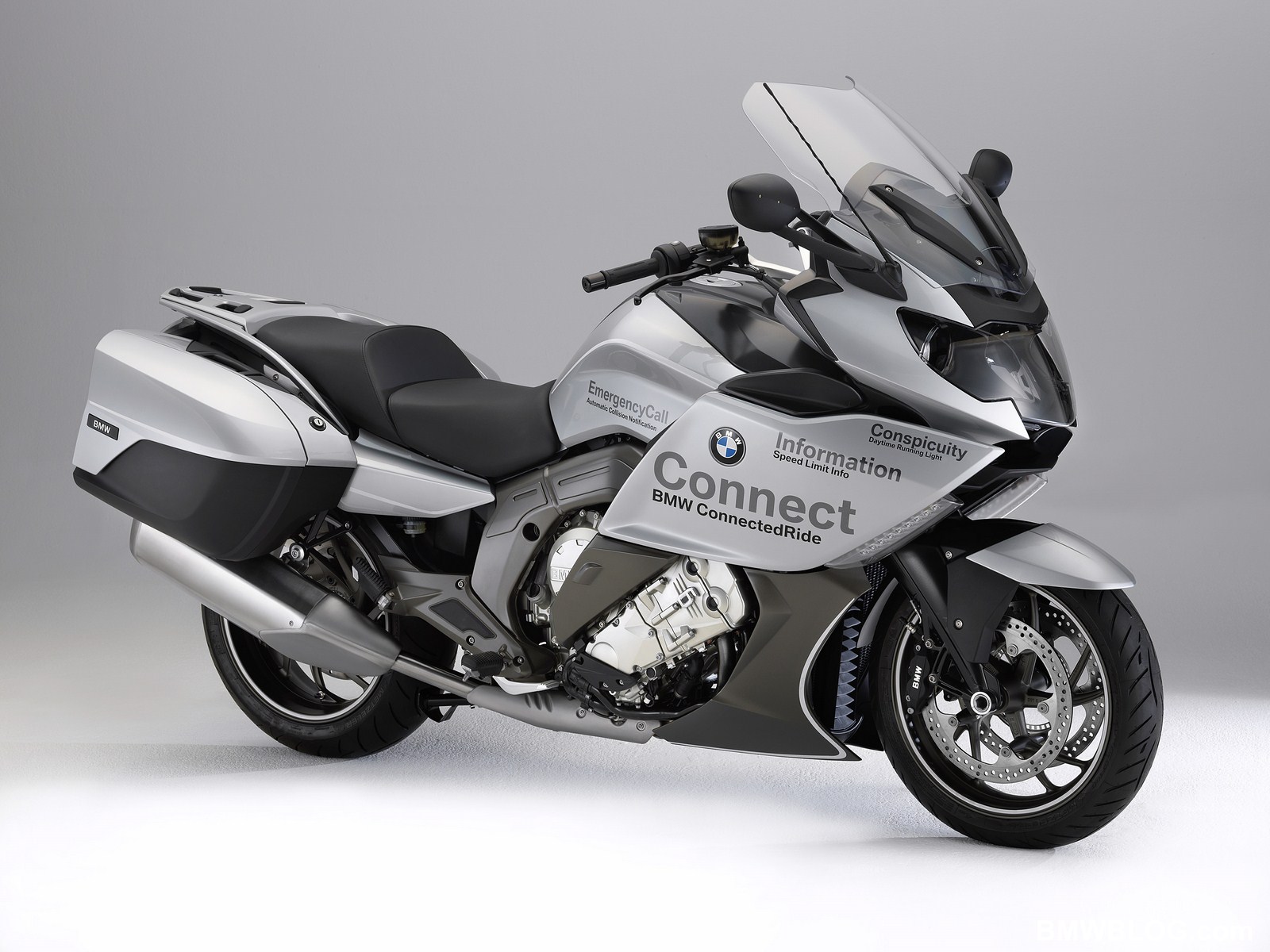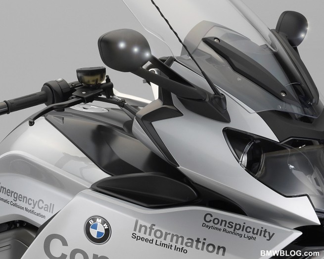 BMW Motorrad already presented six elements of the ConnectedRide program in June 2009 at the International Technical Conference on the Enhanced Safety of Vehicles” or ESV in Stuttgart. In addition to the cross traffic and traffic light phase assistant, BMW developers designed three warning systems especially for motorcyclists: for bad weather conditions, obstacles and approaching emergency vehicles.