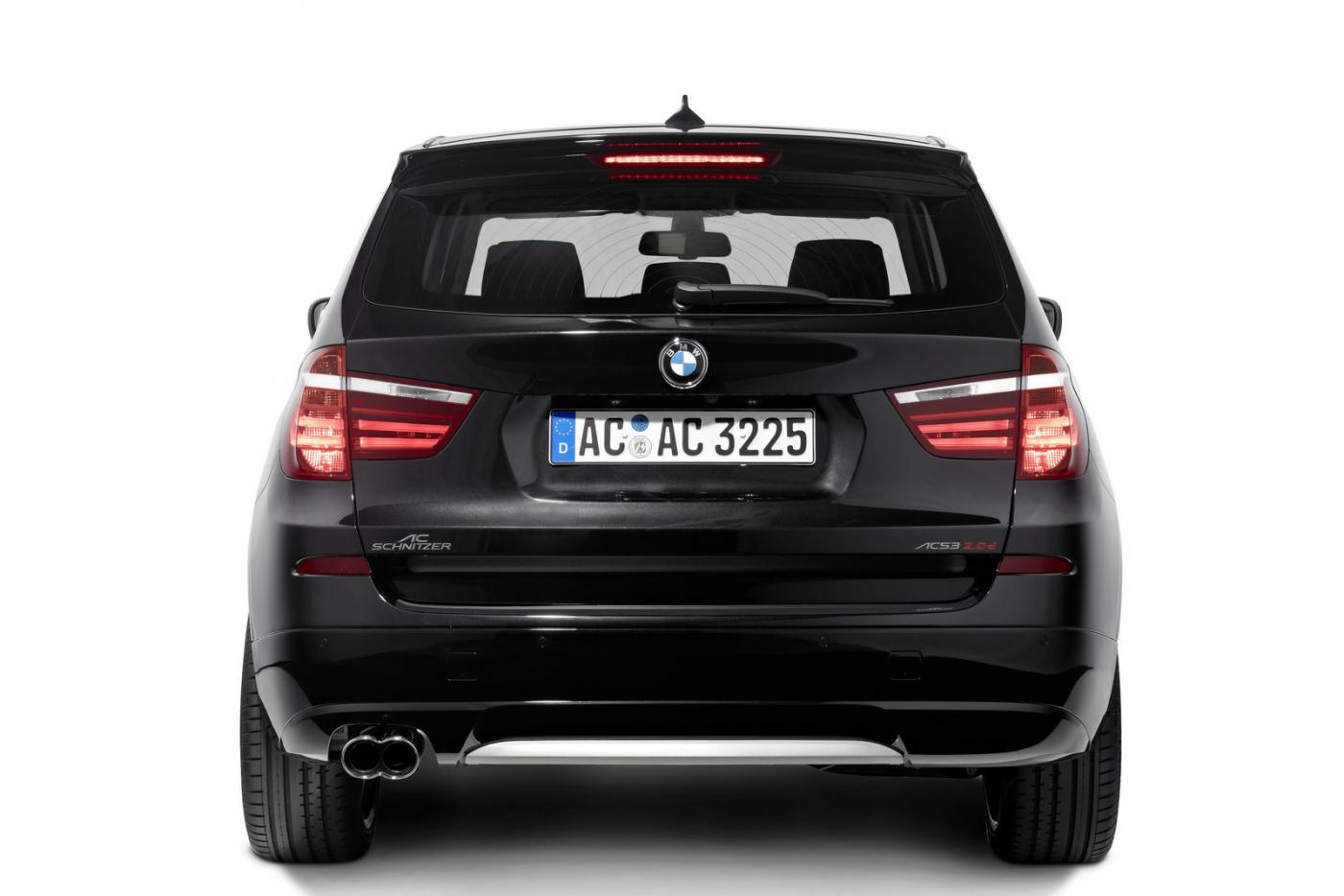 The aerodynamic kit for the new X3 includes a striking front spoiler, the rear roof spoiler and the AC Schnitzer protective film for the rear skirt.