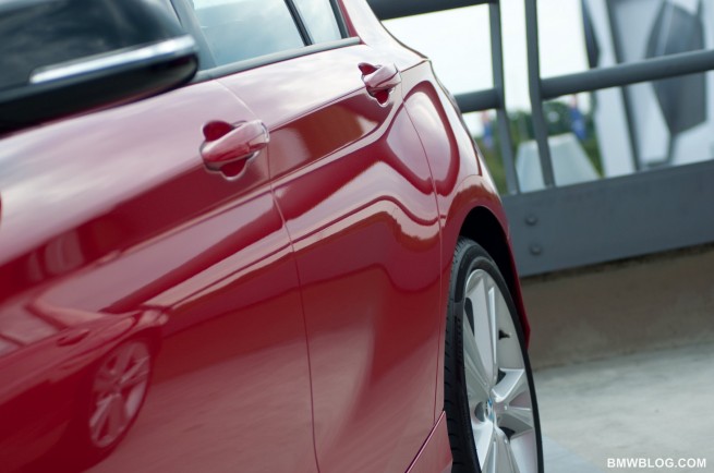 What a difference a day can make. Fast forward to BMW’s launch presentation for the new 2012 BMW 1 Series in Berlin and we found a sight for our sore eyes; the very hatch-back sedan that made them sore in photos. My first moments with the car went something like this: walk out of airport following arduous 11 hour flight toting gear and suitcase en-route to the BMW pavilion, a stone’s throw from the terminal. Finally, rubbing eyes, and enjoying a big yawn, lift head from asphalt to assess line of red cars to my left. Holly jumping schnitzels. It’s beautiful.