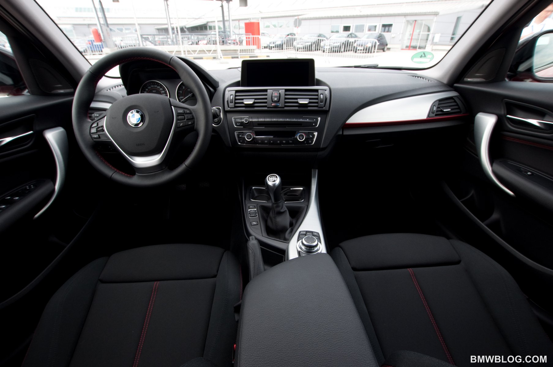 Two trim lines are optional when ordering BMW’s new 1 series. The sport line looks understated and focused with a blacked out grill and mirrors, larger 17″ wheels, and a 10 mm lower ride height. It is more to our sporting tastes, while the urban line models feature white mirrors, grill, lower front and rear central fascia lips, and bold, look-at-me white wheels.