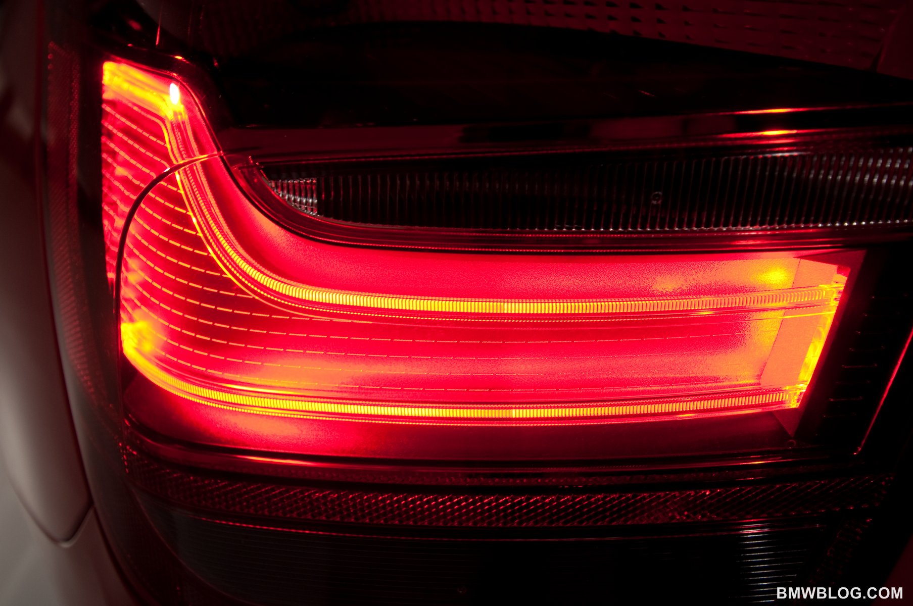 Let’s start at the front end. BMW has installed its aggressive and bold “shark nose,” which has a pronounced negative angle dropping down to the bumper. The grill at first jaunts out from the top, then folding each slat in on it-self, reclines into the bumper along a horizontal line. This horizontal line continues into the body work on both sides of the grill where it goes on to meet up with a diagonal line dropping down parallel to the lower aspect of the head lights. Another prominence in the sheet metal rises diagonally off the top edge of the kidney grill and runs closely parallel to the top aspect of the head light. This sculpturing in its entirety creates a folding “Z” design which splashes paint into your eyes no matter what angle you are viewing the car from. It’s bold, it’s aggressive, and we like it. The headlights look menacing in person and we can’t heap enough praise upon their edgy, aggressive look. We can picture a very intimidating M car based upon this front end’s look.