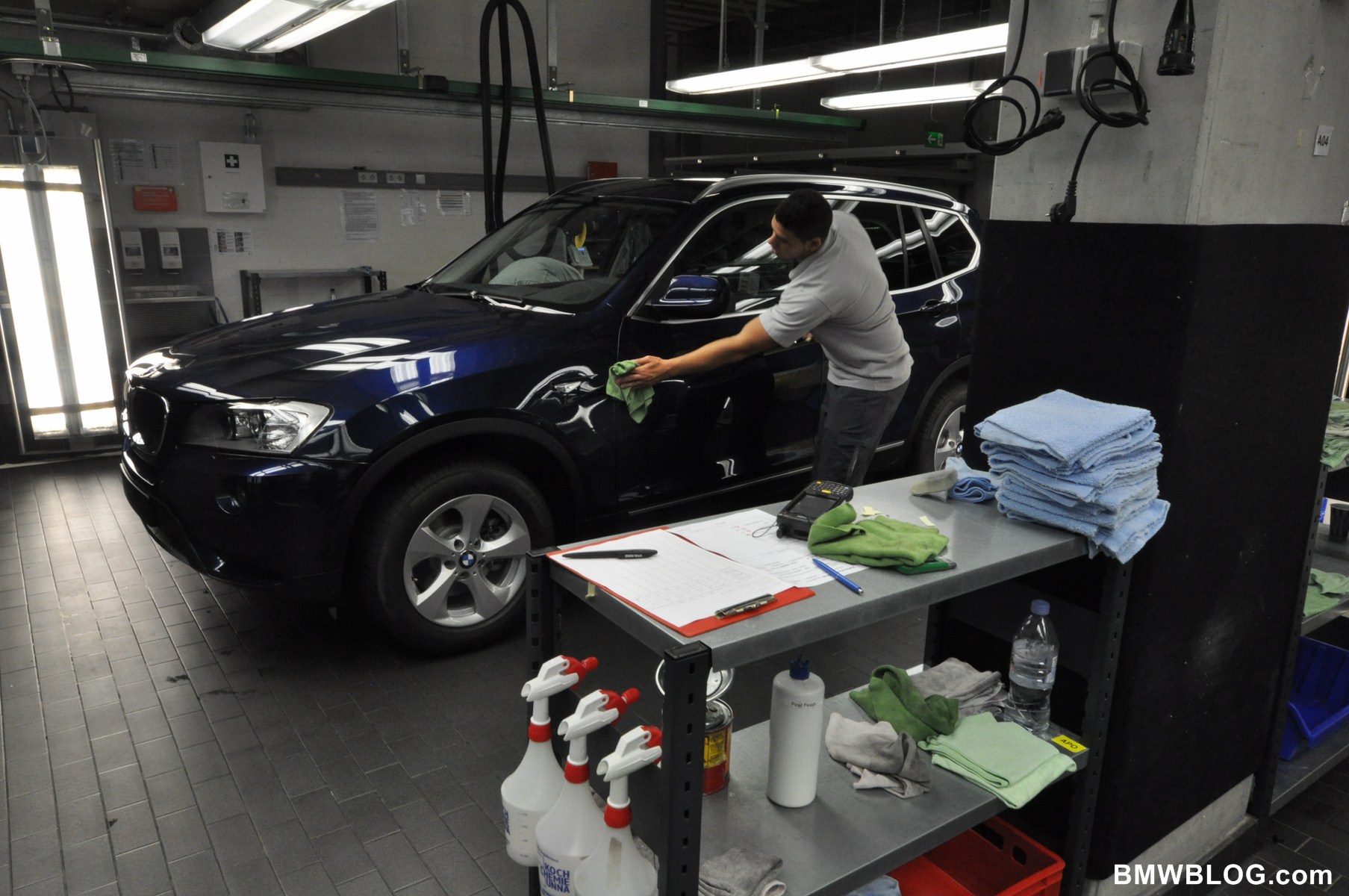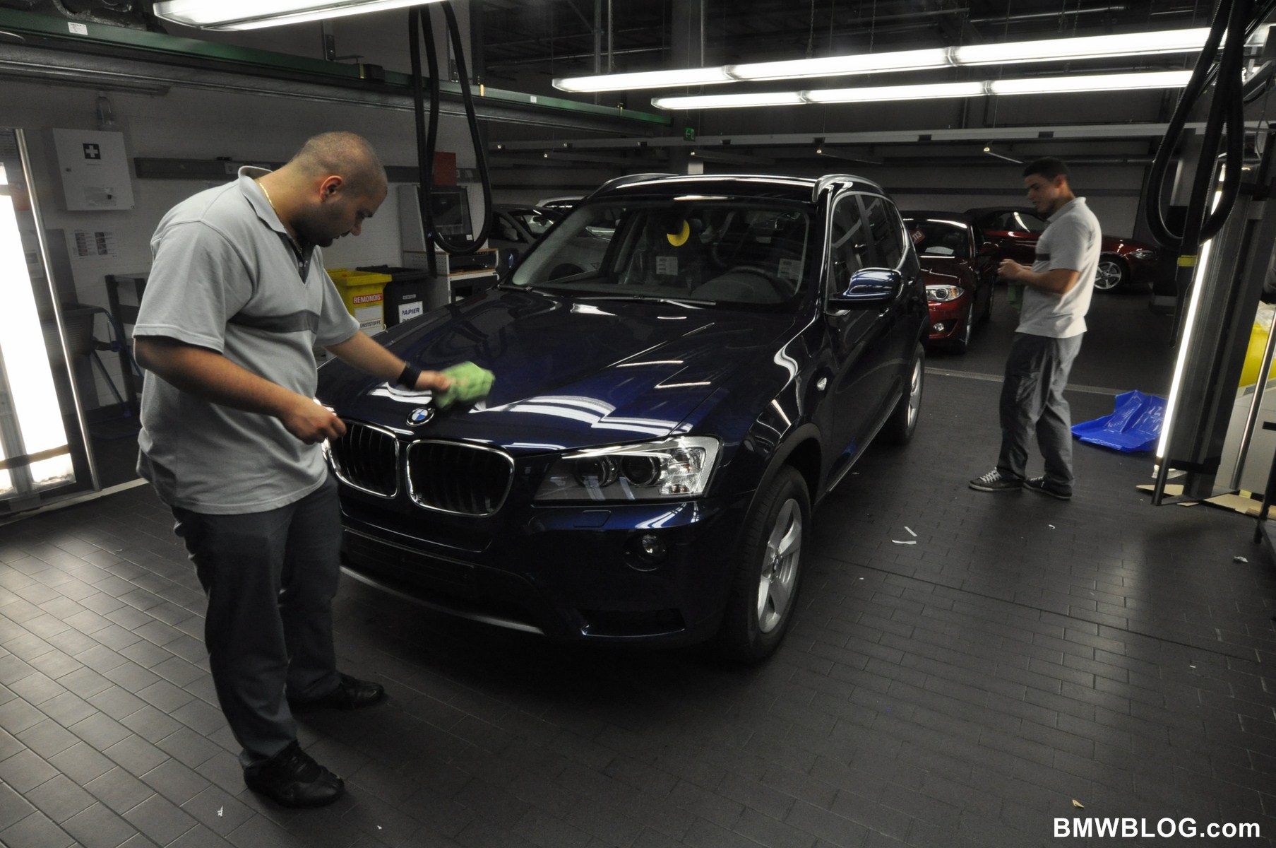 The BMW eventually makes its way back up to the main floor, not far from the location it was originally delivered by truck, and now… it’s time for a bath. Fed one-by-one into an automated car wash, the cars surface at the other end, squeaky clean.