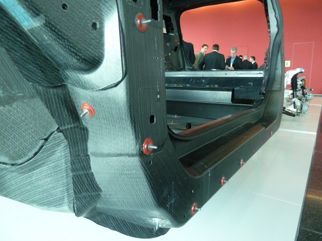With a chassis optimized for the drive-train, BMW then optimizes the passenger cell, what they call a ‘life module’, for people and their impedimenta. Further, BMW has decided to build the passenger cell from carbon fiber reinforced plastic (CFRP).