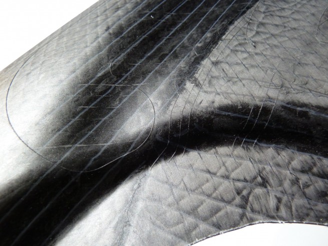 The fabric and epoxy resin come together in a heated die which is then pressed into the required shape. The process of heat and pressure in the ‘stamping’ die cure the material into a lightweight, strong panel.