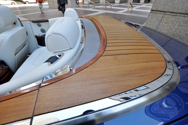 Moving to the exterior, the Drophead coupe is said to be modeled after racing yachts of the 1930’s – so it’s not all in my head – this Phantom really does look and feel reminiscent of an open water experience. It took all of my self-control not to break-out the swim gear and lie across the teak wood deck – shy of a yacht I’ve not seen such expansive wood panelling open to bask in the sun.