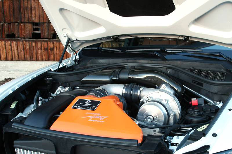 The G-Power 2011 BMW X5 xDrive48i also features a two-part carbon intake air duct, a large-volume aluminum charge air cooling system, and a high-performance exhaust system including racing headers, catalysts and end mufflers.
