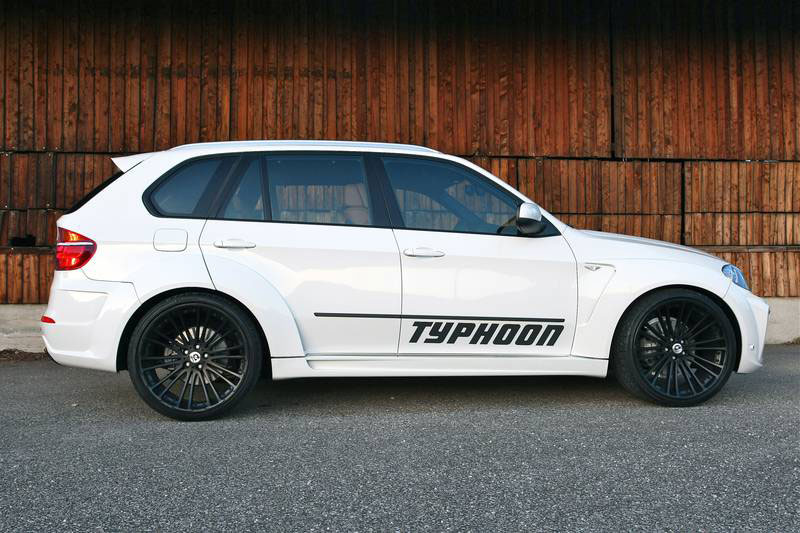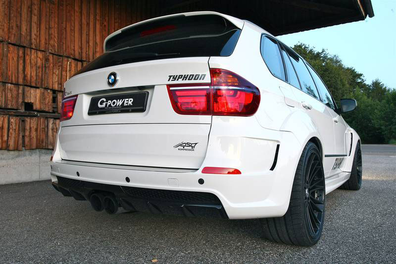 German aftermarket company G-Power reveals their latest update to their BMW X5 model. The new G-Power X5 Typhoon takes the output of the xDrive48i model to 525 horsepower. The 2011 BMW X5 xDrive48i is powered by a 4.8 liter V8 engine and it receives the SK III “Sporty Drive” supercharger system, producing 525 hp / 386 kW at 6,100 rpm and 600 Nm of torque at 5,300 rpm.
