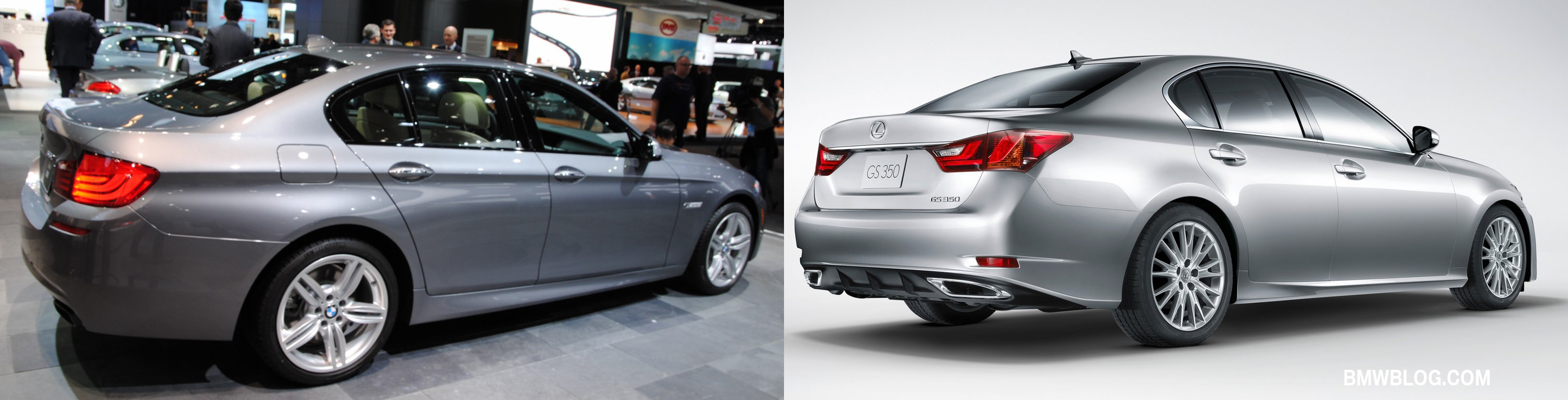 The wheelbase of the new 5 Series is also longer at 116.8 in in vs 112.2 in for the GS 350, with an overall length of 192.8 in vs 190.9 in.The width is measured at 73.2 in vs 72.4 in for the Lexus.