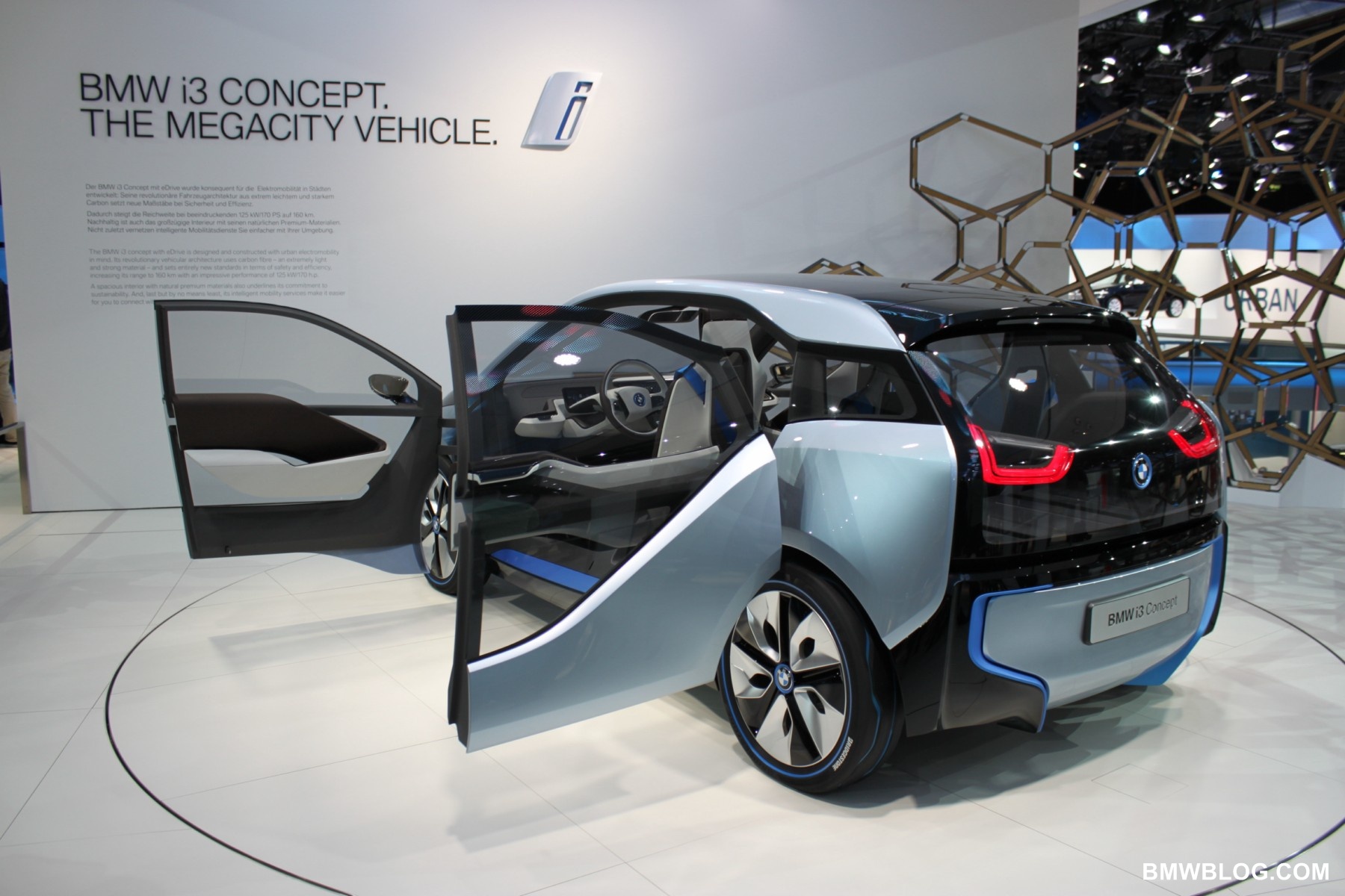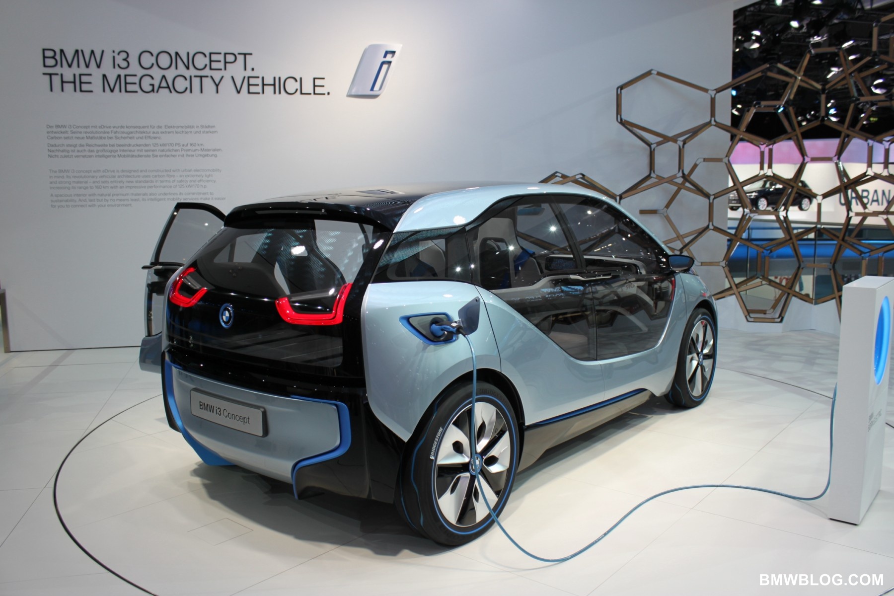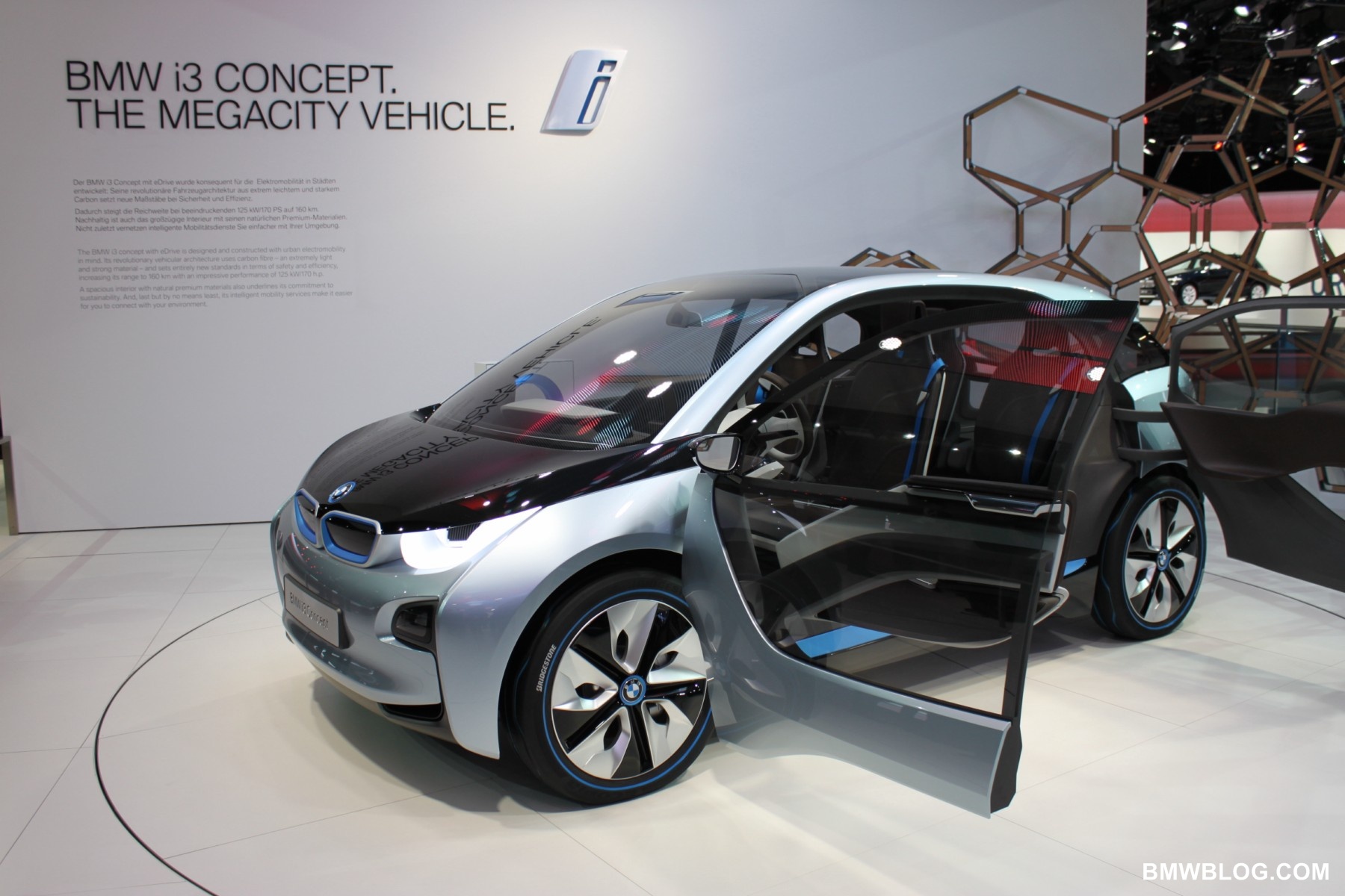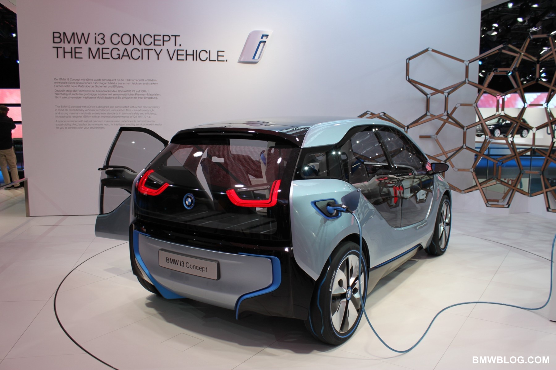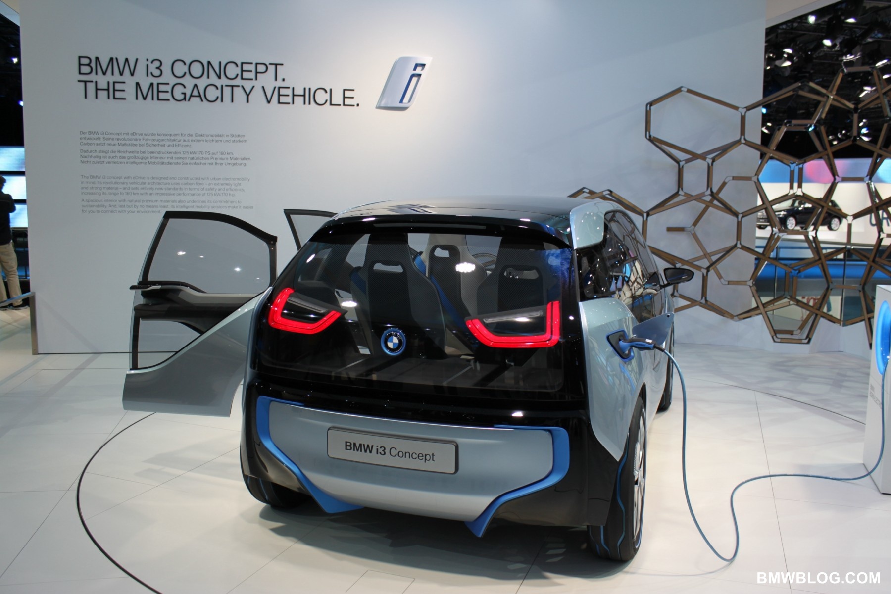 The i3 is a pure electric vehicle meant for the urban environment. It houses a 170 HP electric motor in the rear of the vehicle (transversely mounted) and a battery pack low and centered in the aluminum chassis structure of the vehicle. The passenger cell, referred to by BMW as the ‘life module’ is a carbon fiber reinforced plastic (CFRP) structure. Thermoplastic skin panels are ‘hung’ on the exterior of the CFRP module. This is one feature that has allowed the ‘layering’ design concept to shine in the ‘i’ models. (The exterior skin is not integral to the vehicles structure.)