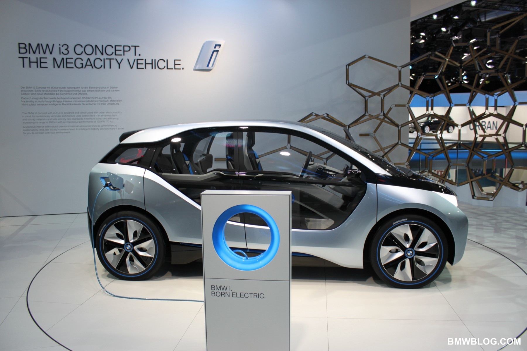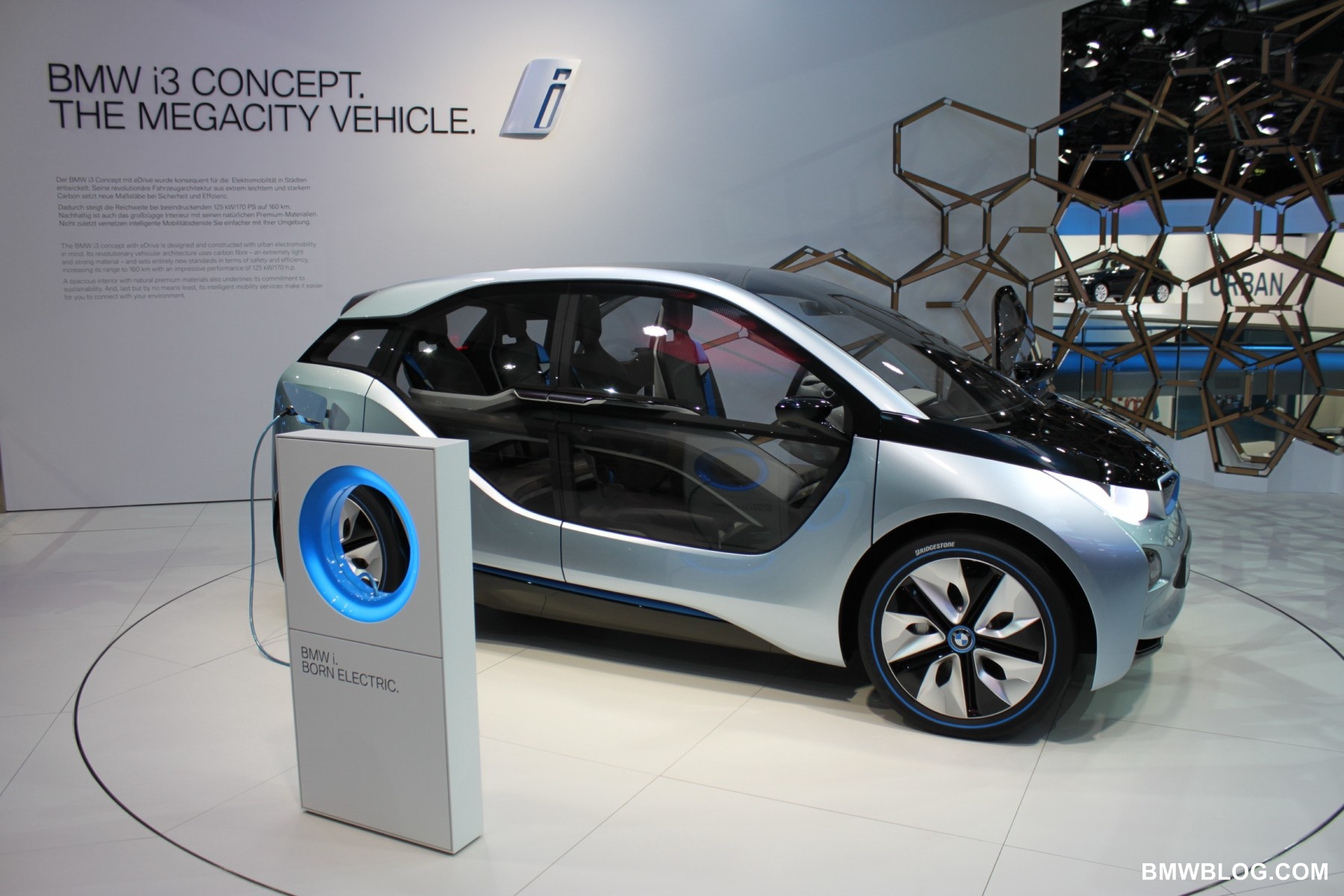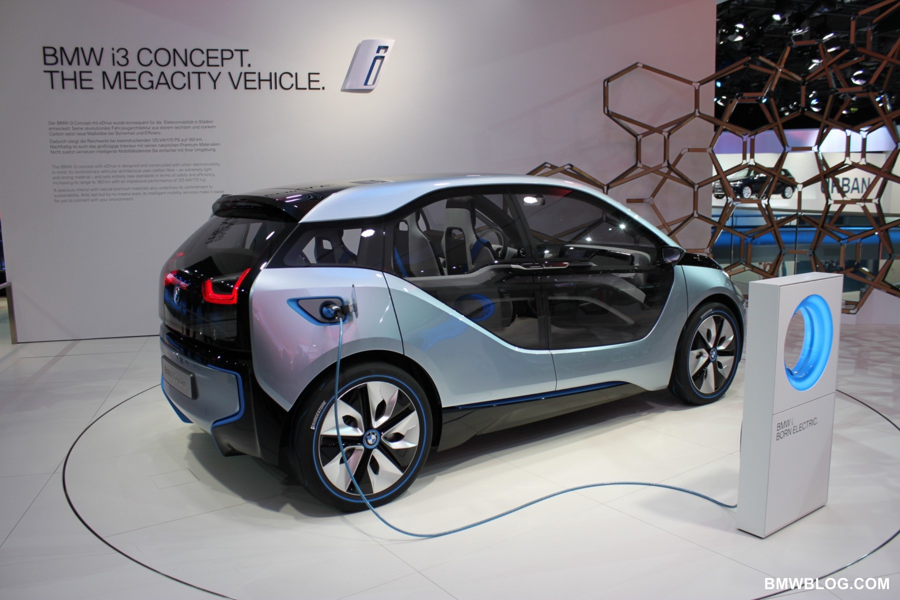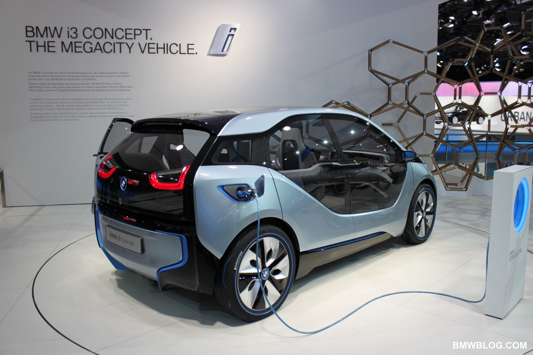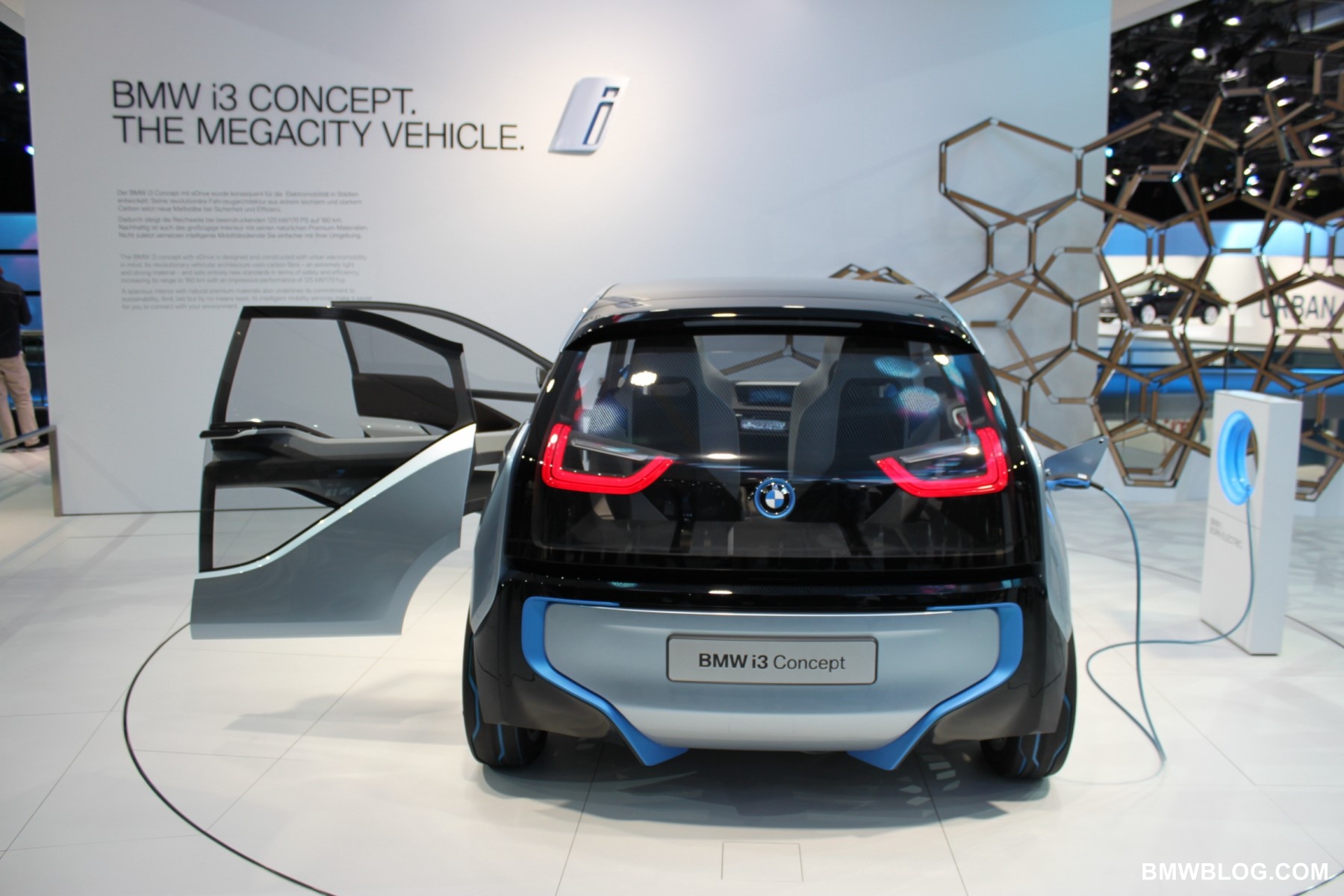 The i3 is a pure electric vehicle meant for the urban environment. It houses a 170 HP electric motor in the rear of the vehicle (transversely mounted) and a battery pack low and centered in the aluminum chassis structure of the vehicle. The passenger cell, referred to by BMW as the ‘life module’ is a carbon fiber reinforced plastic (CFRP) structure. Thermoplastic skin panels are ‘hung’ on the exterior of the CFRP module. This is one feature that has allowed the ‘layering’ design concept to shine in the ‘i’ models. (The exterior skin is not integral to the vehicles structure.)
