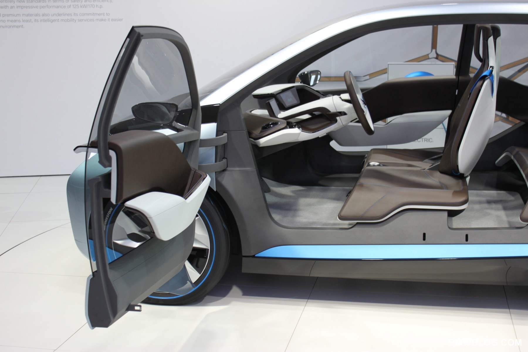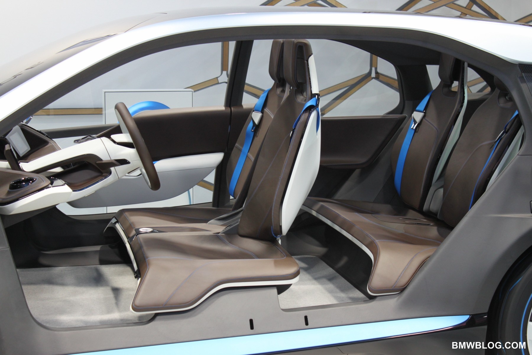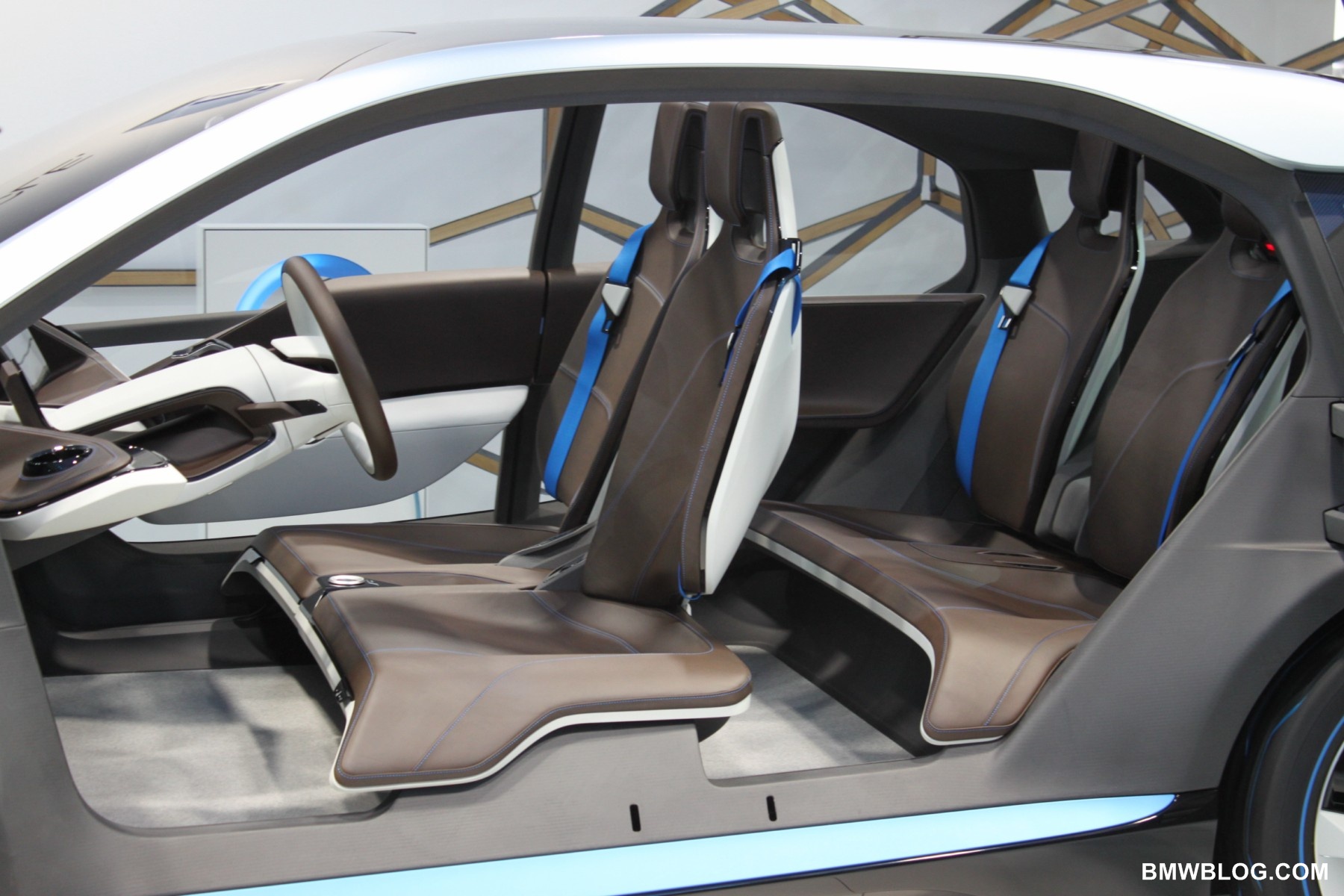 The i8 is a four place sports car. Think of this a Green Touring car, it utilizes the electric motor (with modifications) found in the i3 and a Twin Power Turbo 3 cylinder gas engine. The electric motor lives in the front of the vehicle and powers the front wheels only, the gas motor lives in the rear and powers the rear wheels only. Some very elegant software can select between front, rear, and all-wheel drive depending on the driver’s demands. There is no transfer case. The i8 is a plug-in hybrid with its battery pack forming a central spine, low and smack dab in the middle of the interior.