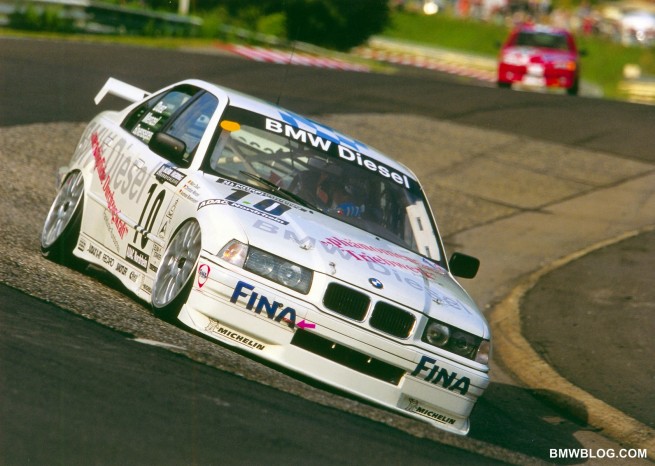 The sporting career of the third-generation 3 Series was characterised by deployment in various countries and championships, some of which were subject to very differing technical regulations. For example, from 1993 to 1998 vehicles featuring varying modifications and engines were put on the starting grid. The choice of racing cars ranged from the BMW Coupe and Sedan with an almost production-ready body and a 2-litre four-cylinder, four-valve engine with around 300 hp to an extensively modified version of the BMW M3. BMW 3 Series cars stood out impressively from the competition wherever they competed. Victories in Germany – in the STW Cup, in England or Italy were everyday occurrences as were the successes in Asia, Australia and South America. However, all of this was outdone by a result in an event that has been a BMW domain for some time now – the long distance race. During the 24-hour race at the Nürburgring in 1998, a BMW 320d with a 200 hp turbo diesel engine achieved the rare feat of crossing the finishing line as overall winner.
