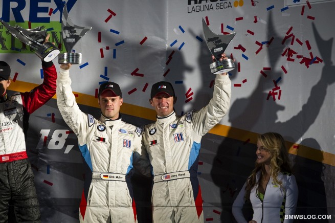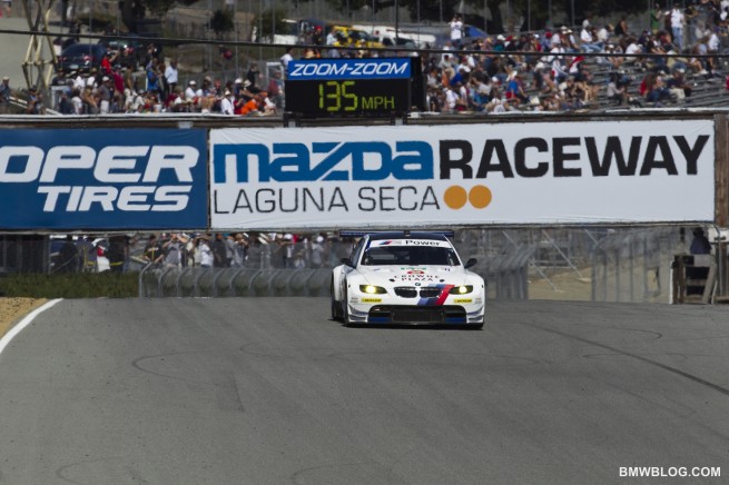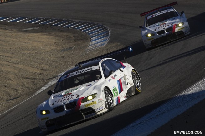 Starting from the pole, the duo completed 236 laps in the six-hour race around the 2.238-mile, 11-turn Laguna Seca circuit in the hills of Monterey, California. The No. 55 BMW Team RLL M3 GT of Bill Auberlen and Dirk Werner finished in fifth place to maintain their third-place position in the Driver point standings. Following the race the third-place finishing Ferrari was penalized 90 seconds for avoidable contact, moving Auberlen and Werner up to fourth.