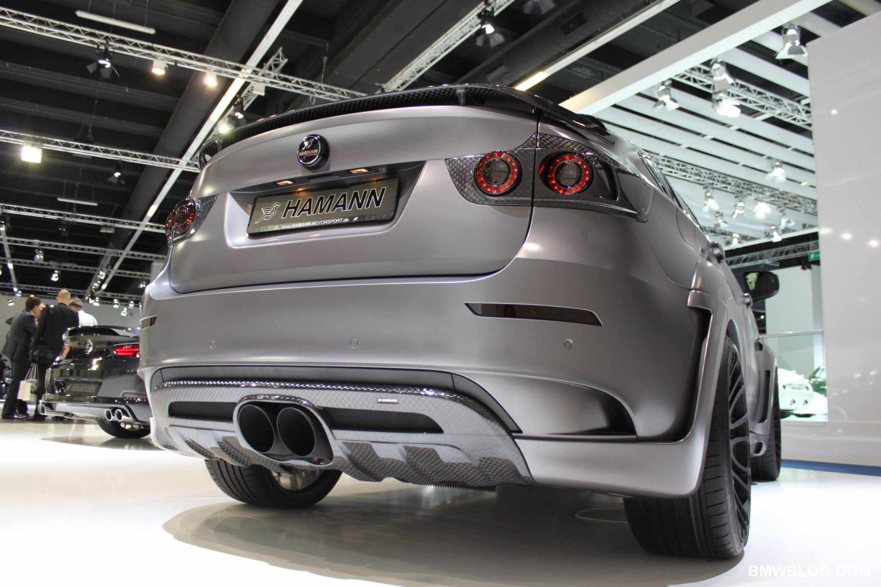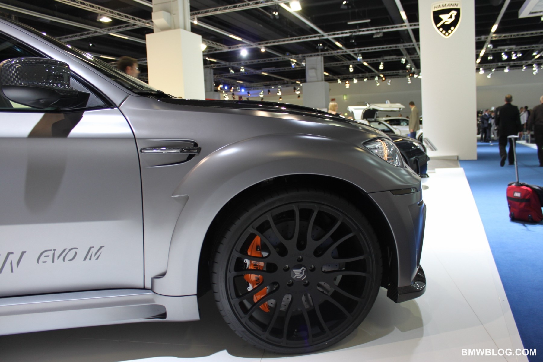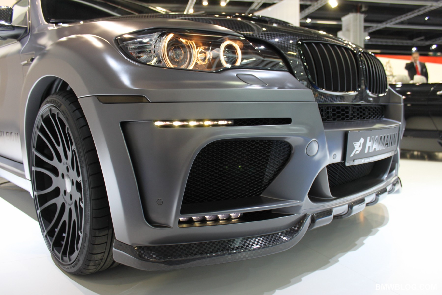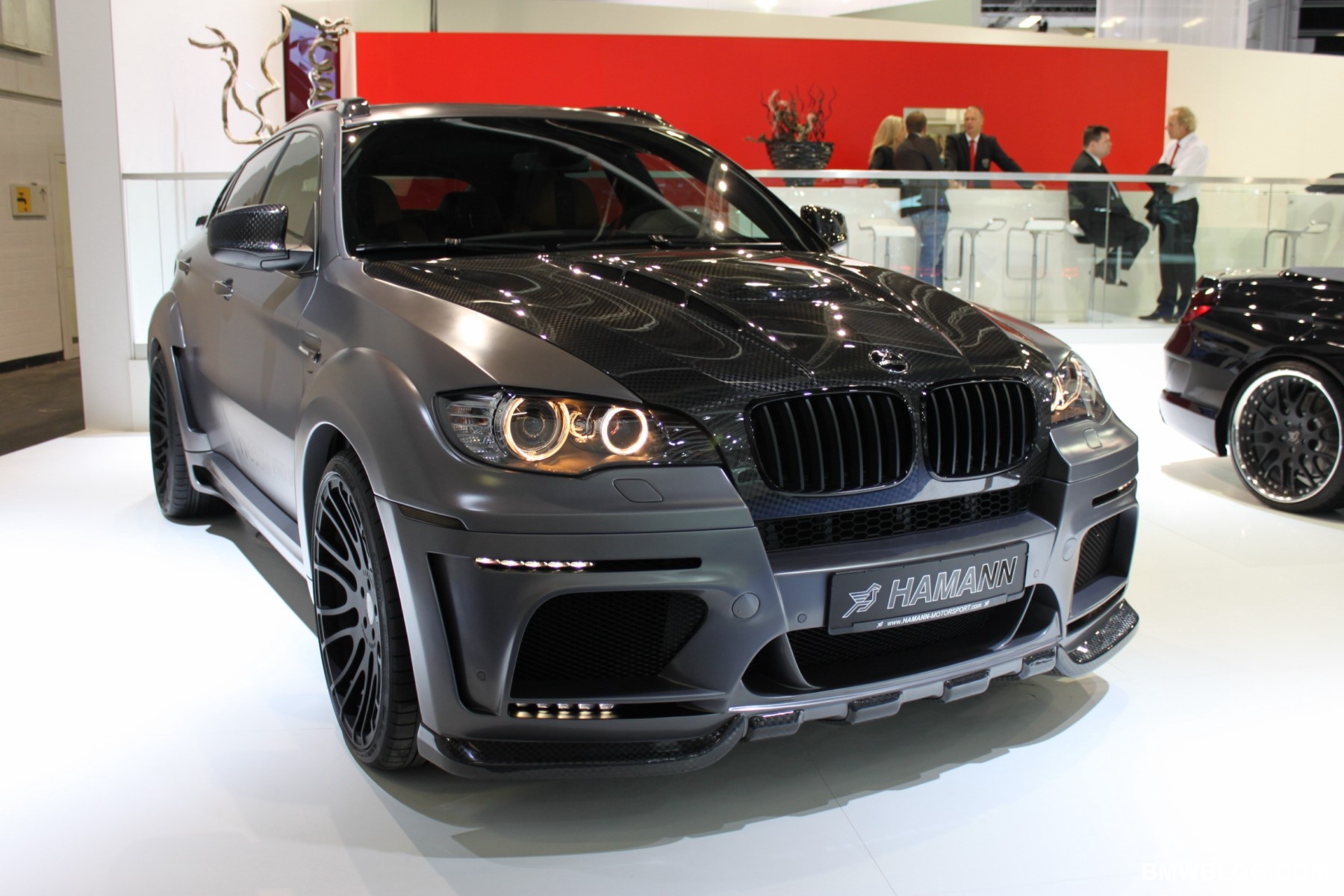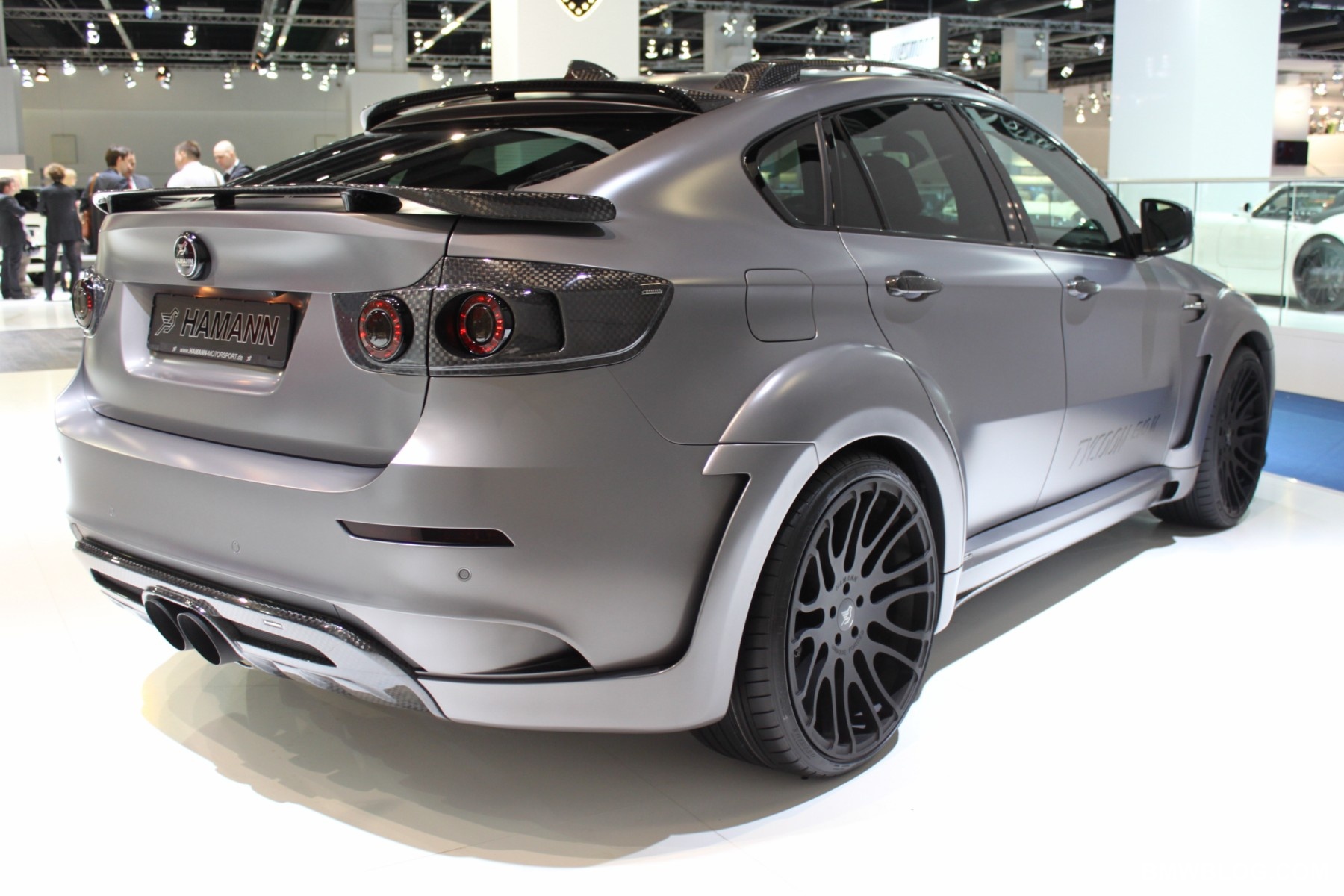 Along with the BMW 6 Series Cabriolet, German tuner specialists at Hamann brought out the X6 Tycoon EVO M at the 2011 Frankfurt Auto Show. As seen in the past, their program consists of changes in usually four areas: aerodynamics, suspension, exhaust system and accessories(e.g wheels, interior elements). Aerodynamics include upgrades to the front spoiler, bumper moldings with led-daytime running lights, side skirts, rear spoiler and roof spoiler.