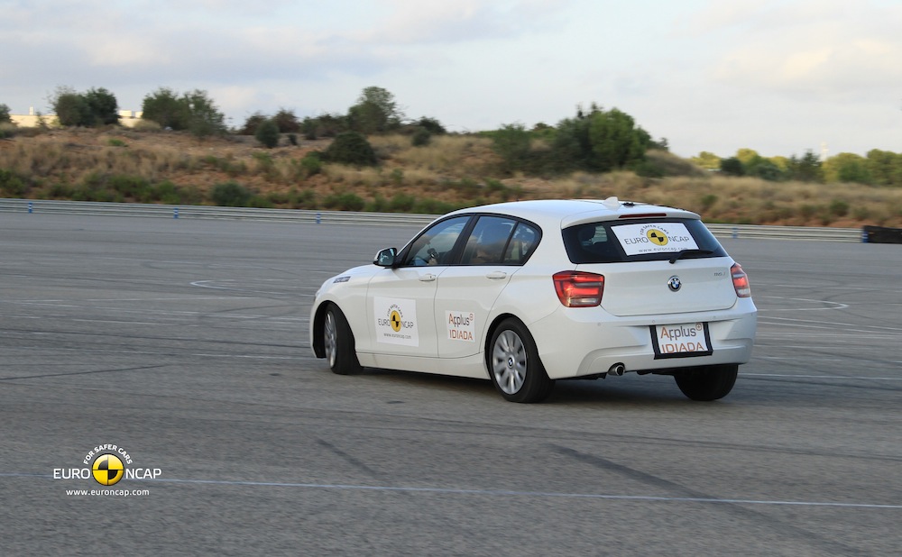 Electronic stability control is standard equipment on the 1 series and met Euro NCAP’s test requirements. A seatbelt reminder is provided for the driver, passenger and rear positions. A speed limitation device is available as an option but did not meet Euro NCAP’s fitment requirements, so was not assessed.
