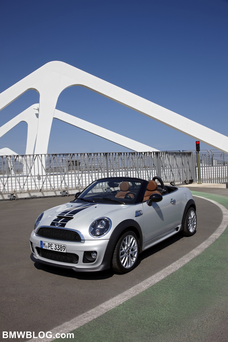 MINI is pushing ahead with the rigorous expansion of its model family. The latest addition to the range is the MINI Roadster, the sixth model in the brand’s current line-up and the first open-top two-seater in its history. Cutting-edge, typically MINI interpretation of the compact, two-seater sports car concept with manually-opening soft-top roof; first premium car of its kind in the small car segment; unique package appealing to demanding target groups with a penchant for elegant sportiness, spontaneous open-top driving fun and irresistible design; inspiring handling fuelled by powerful engines and sophisticated chassis technology; unrivalled scope for individualisation.