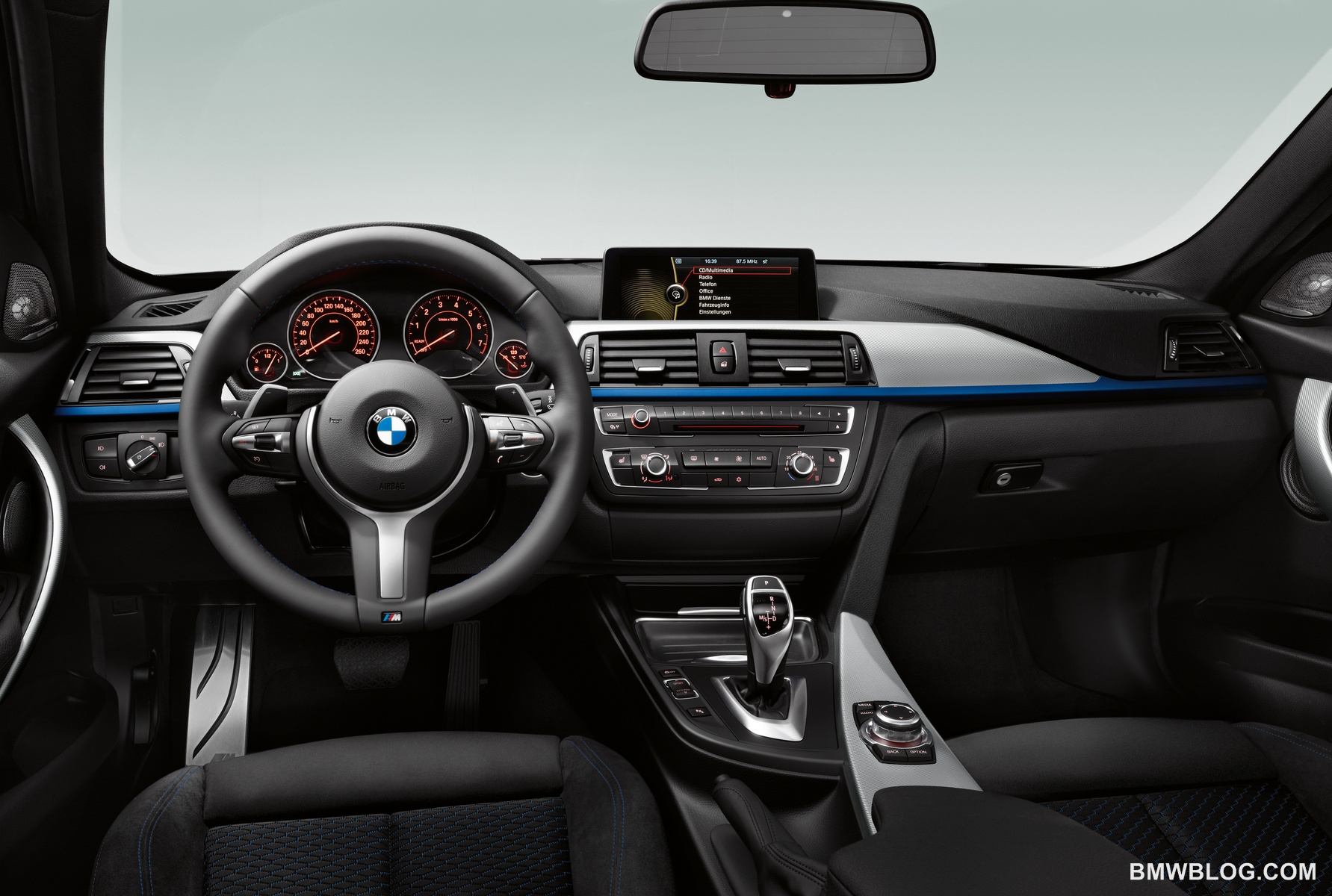 The cabin of BMW’s new 3 series is gorgeous. Seriously – it’s one of the best automotive interiors I’ve ever sat in, and it’s worth a rave review. Based upon three unique packages, the interiors of the 3 series can very wildly. A “Modern” version is reminiscent of a luxury spa, with organic colors and natural wood and leather surfaces. The new rough finish wood trim is a must have – it is pleasing to both look at and touch. A “Luxury” model features a flashier interior and adds more slats to the kidney grills, while the “Sport” line model is reminiscent of athletic equipment, techy but rubberized (like the red or blue accent striping across the bottom lip of the dash trim).