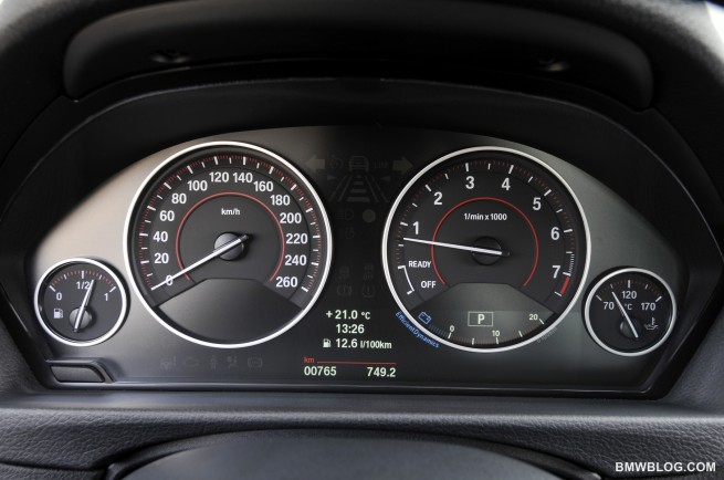 When pressing on, BMW’s new 328i delivered performance far beyond its specifications. It astounded with its grunting torque from low rpm, twisting out 260 lb-ft nearly flat across the rev-band. The 328i’s eager 2.0 liter single turbo (twin scroll) four cylinder wound up to redline without breaking a sweat and turned out 240 hp along the way. Of note, an independent magazine has recently claimed 230 hp at the wheels while testing on the dyno, so it’s quite likely this engine has been underrated, and we would say so from the seat of our pants. Of course, the cars 88 lb drop in weight also goes a long way to enhance dynamics, allowing the car to accelerate faster.