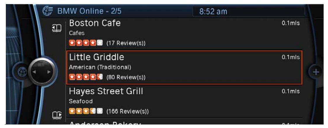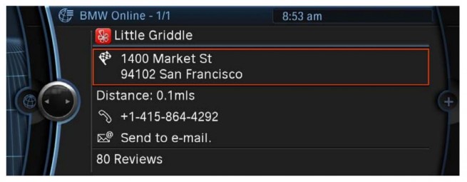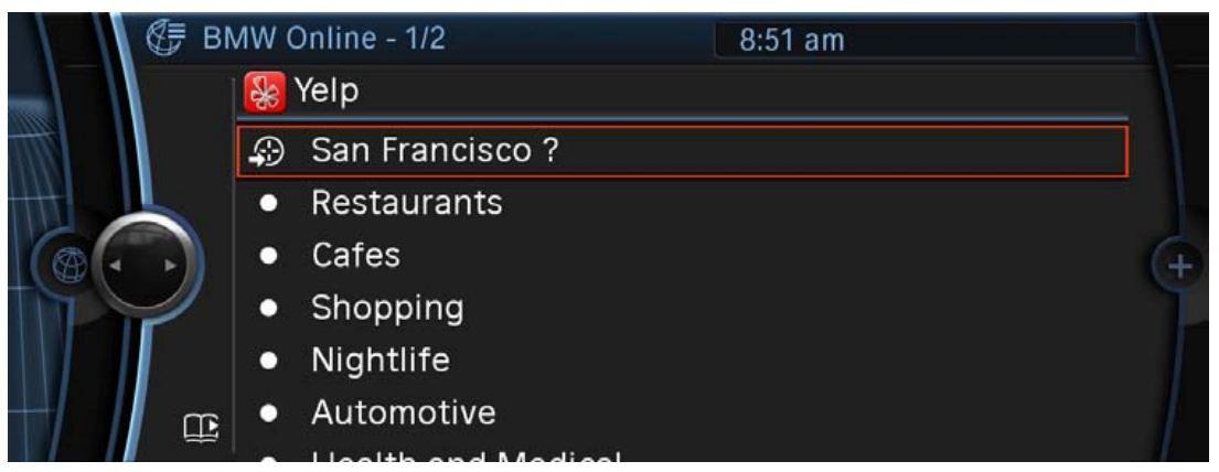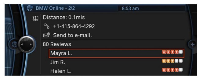Customers who subscribe to the optional BMW Assist Convenience Plan and have a navigation-equipped vehicle capable of receiving the BMW Online service will be able to add the service today, without having to make any changes to their vehicle. Yelp reviews can be accessed through the new Applications screen that is now part of BMW Online with the update which took place earlier this month.