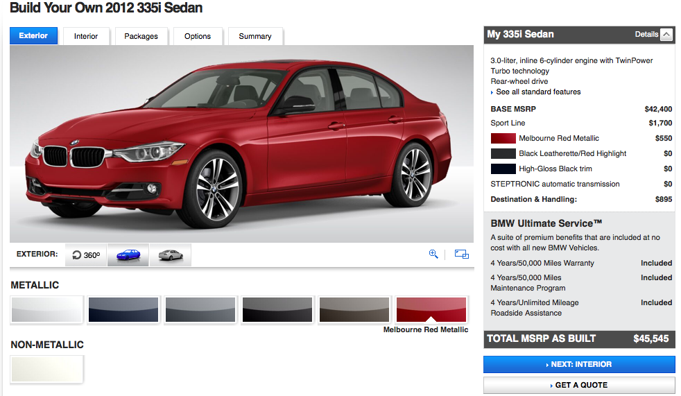 The 2012 BMW 3 Series online configurator went live at www.bmwusa.com. For those of you that are looking to highly customize your next purchase, the F30 configurator gives you the most choices ever.