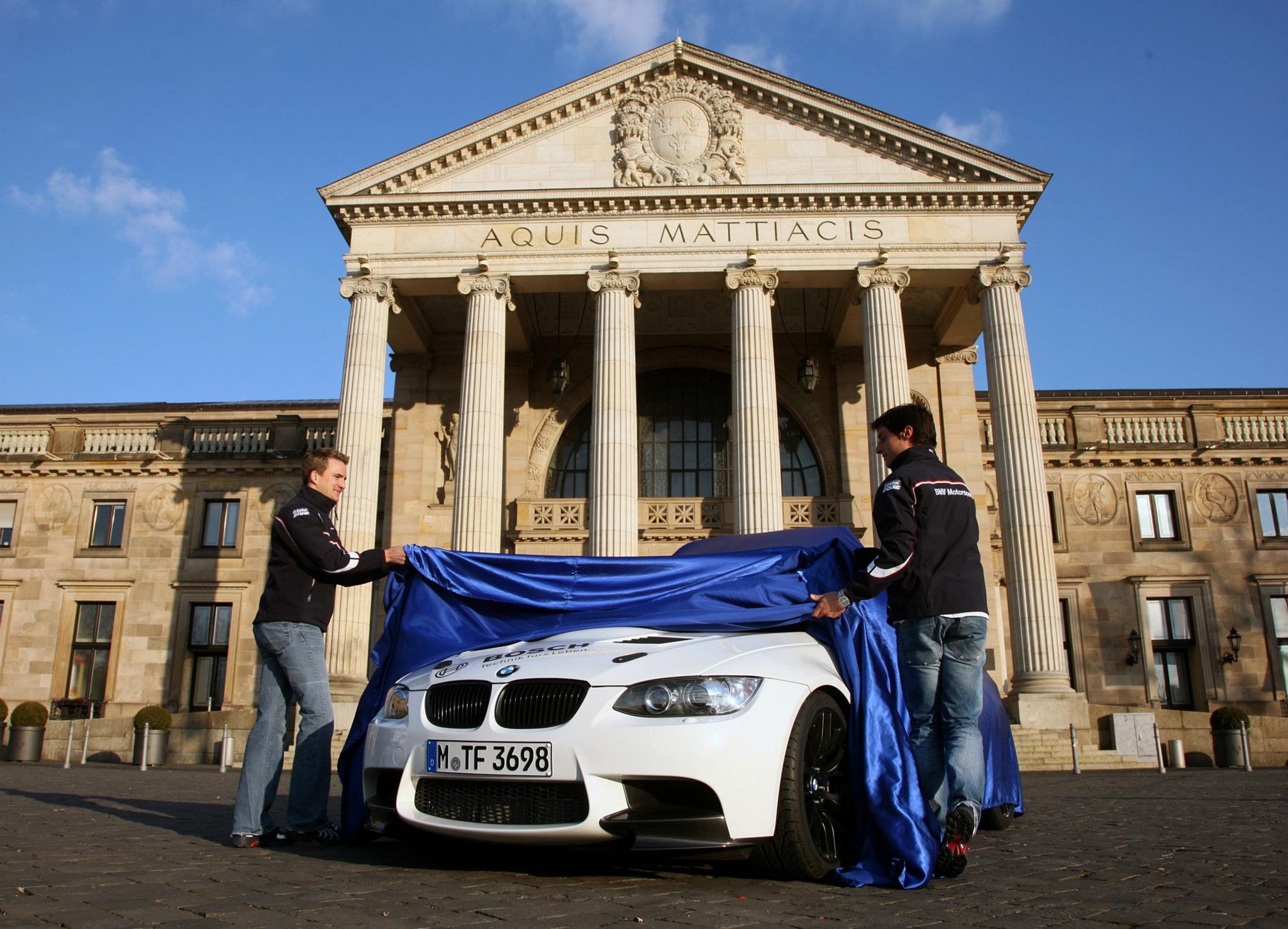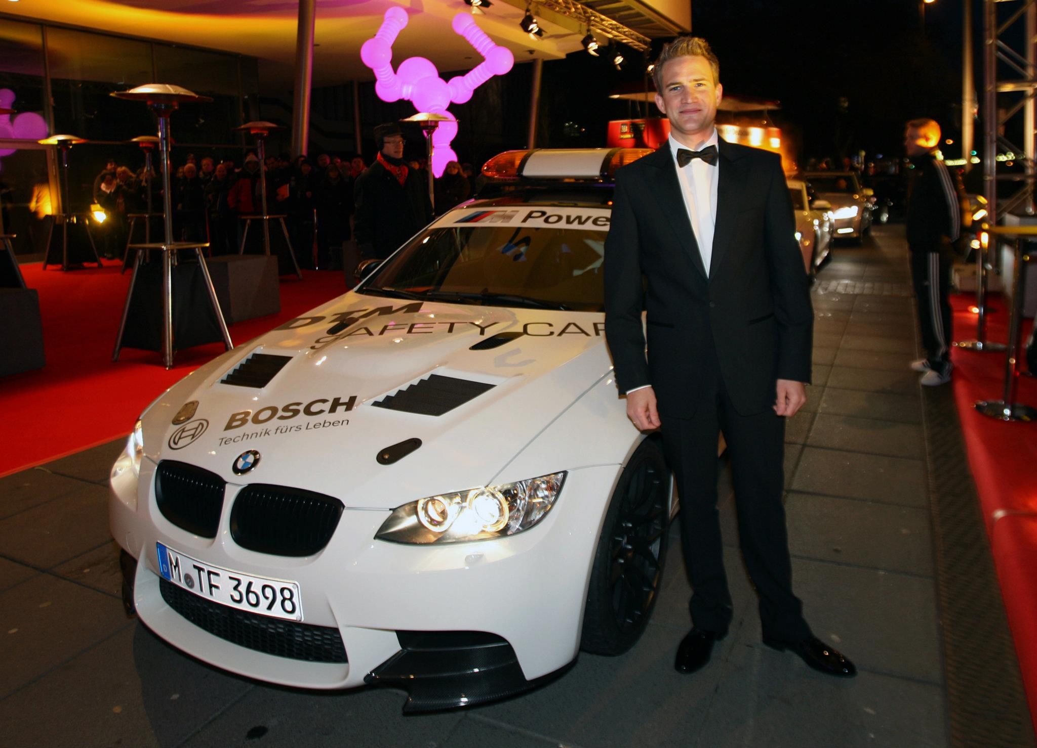 BMW Motorsport was a prominent feature in many regards at the Stiftung Deutsche Sporthilfe’s “Ball des Sports” on Saturday evening. The arrival of BMW Motorsport Director Jens Marquardt, along with BMW DTM drivers, Bruno Spengler (CA) and Dirk Werner (DE), was in keeping with the occasion: they and their partners pulled up to the Rhein-Main-Hallen in Wiesbaden (DE) in the new BMW M3 DTM Safety Car. Based on the BMW M3 GTS, the car was specially modified by BMW M GmbH for use on several DTM race weekends over the course of the 2012 season. The modifications included the use of many products from the new BMW M Performance Accessories range. The most spectacular changes are the orange lights on the roof of the car, which are typical of Safety Cars, and the bolted, steel-pipe safety cell.