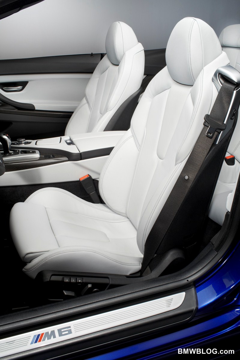 The interior of the M6 Convertible can be described in a single phrase: extremely sporty and luxurious. The driver-oriented cockpit reminds of the sporty allure of the M6, while the luxurious and premium feel are given by the newly developed M sports seats, Merino extended leather upholstery, door sills with “M6” lettering, an M driver’s footrest, exclusive carbon fiber interior trim and the BMW Individual roof liner in Anthracite.